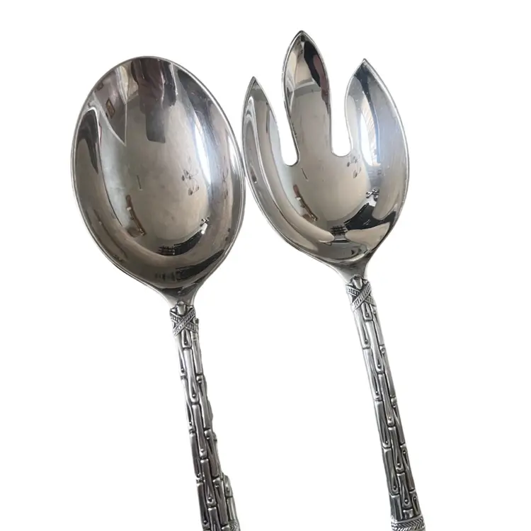 Audubon pattern is birds on branches. This set features the bamboo pattern around the shaft. Research tells me it’s mid 20th century, although the original Tiffany set arrived on the scene in the late 1800’s. Own the repro for pennies compared! This set is solid and heavy. Absolutely gorgeous spoon and fork set that appeals to the bamboo, bird or silver lover in all of us!