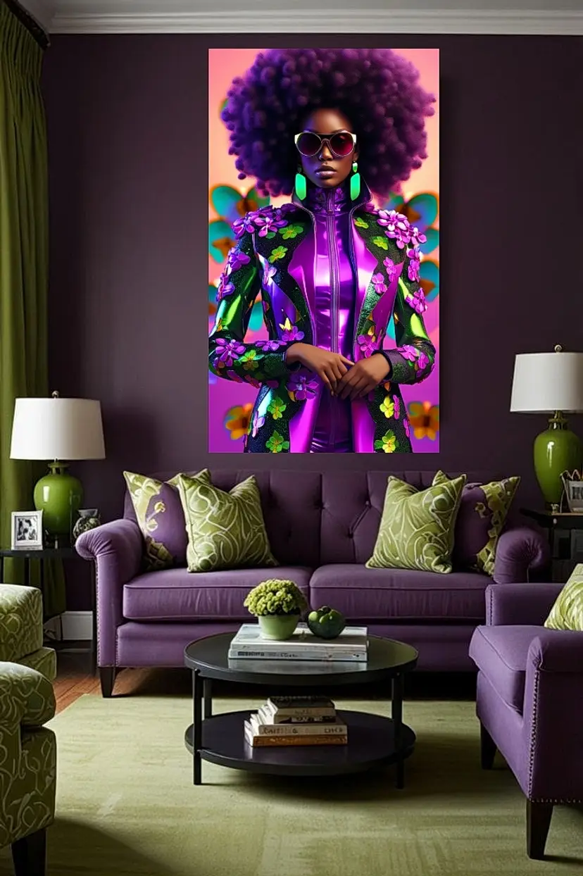 Bathed in the radiant glow of starlight and color, Aurora Bloom embodies the fusion of nature and the cosmos — a living constellation draped in petals and light. Her luminous violet and emerald attire shimmers like galaxies in motion, each flower adorning her suit a symbol of rebirth and energy. The vibrant hues that surround her pulse with rhythm, reflecting the harmony between creation and transformation.