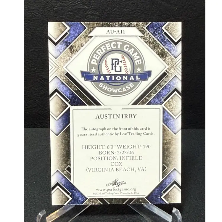 Austin Irby 2023 Leaf Perfect Game National Showcase - Autographs Black 31/50 MLB Prospect - ECU Pirates Sophomore