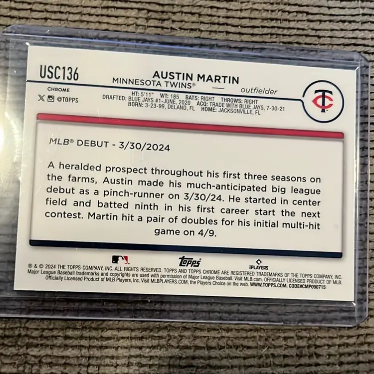 Austin Martin Purple Rookie /250. Minnesota Twins