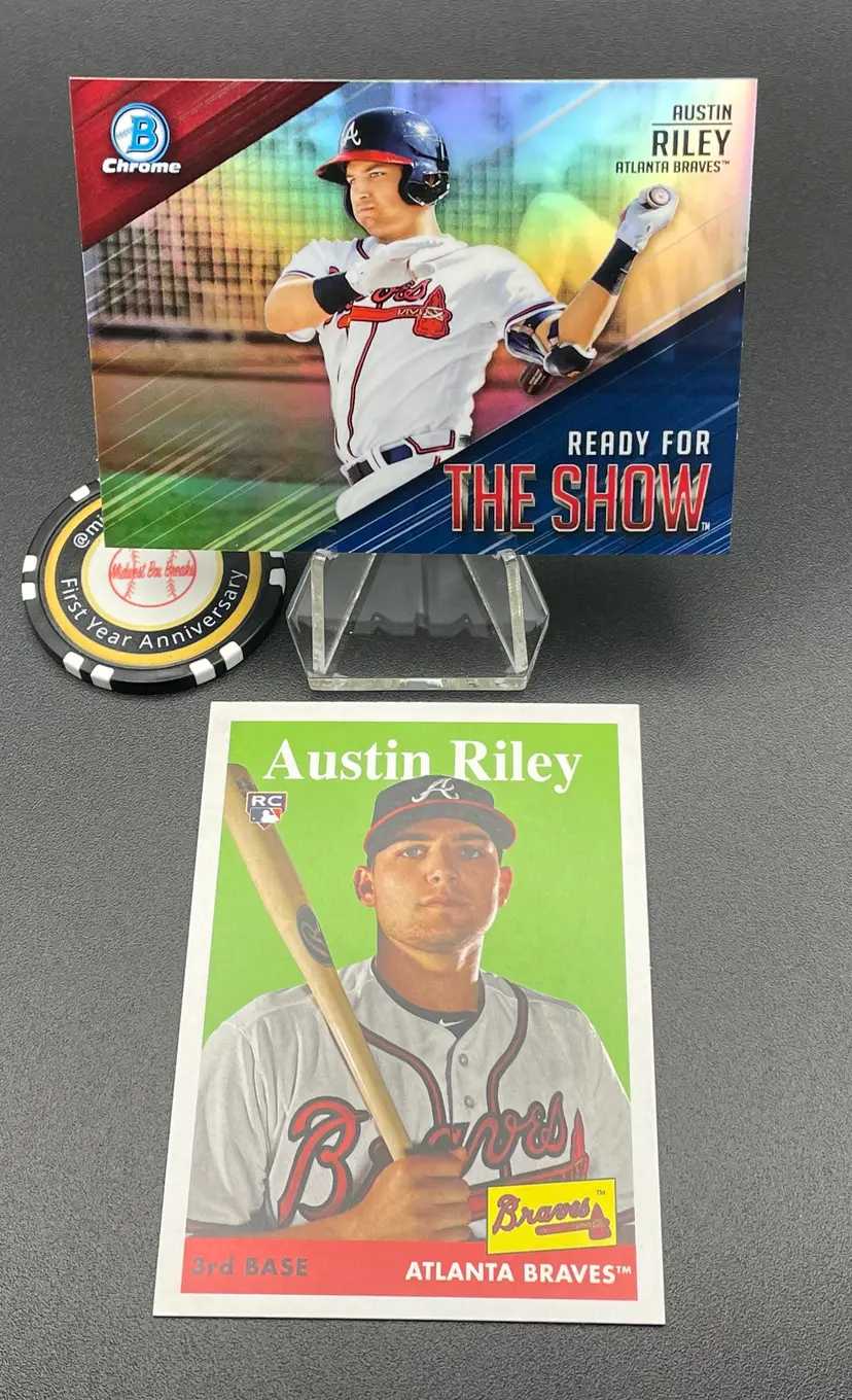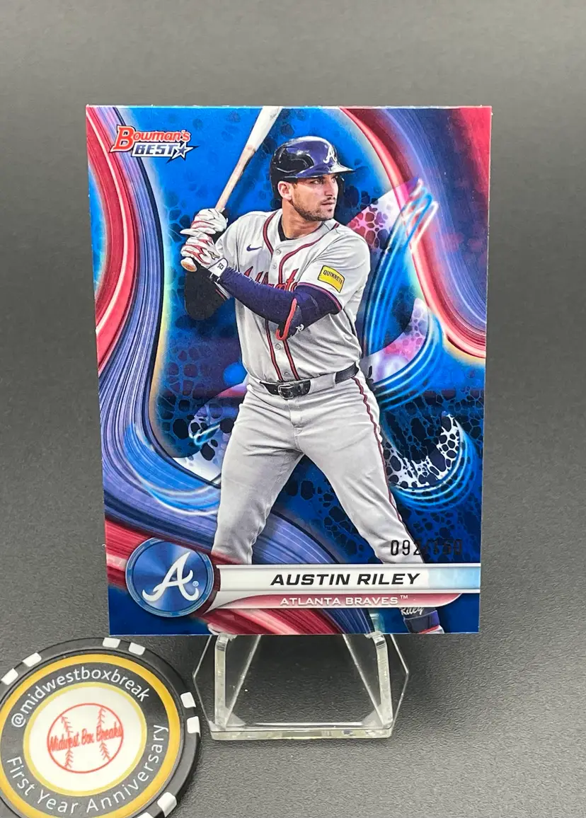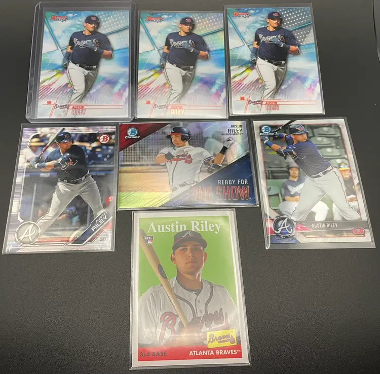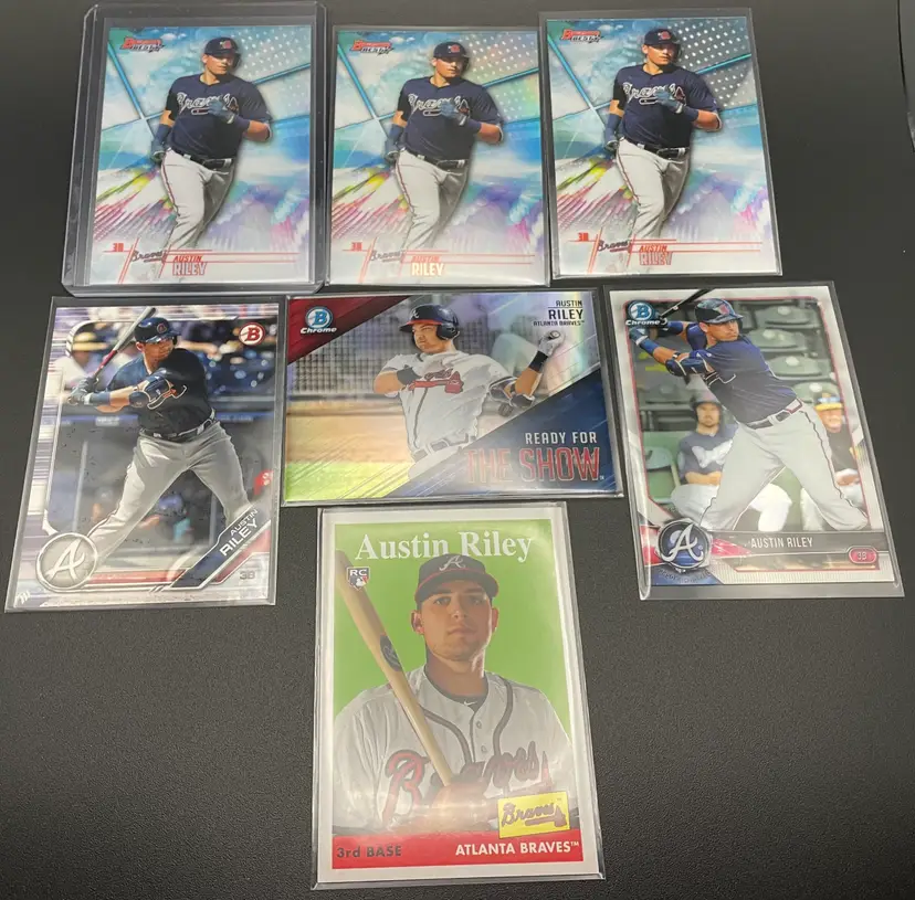 -2018 Bowman's Best refractor (x2) -2018 Bowman's Best base -2018 Bowman Chrome Ready For The Show insert -2018 Bowman Chrome base -2019 Bowman paper -2024 Bowman's Best refractor -2024 Bowman's Best base -2024 Topps Stadium Club base -2023 Topps Chrome #249