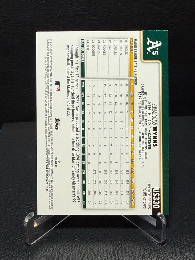 Austin Wynns 2025 Topps Update Series Holiday #US330 Tiger Stripe Athletics