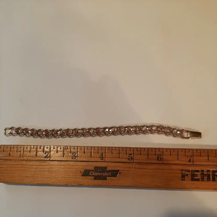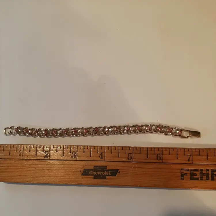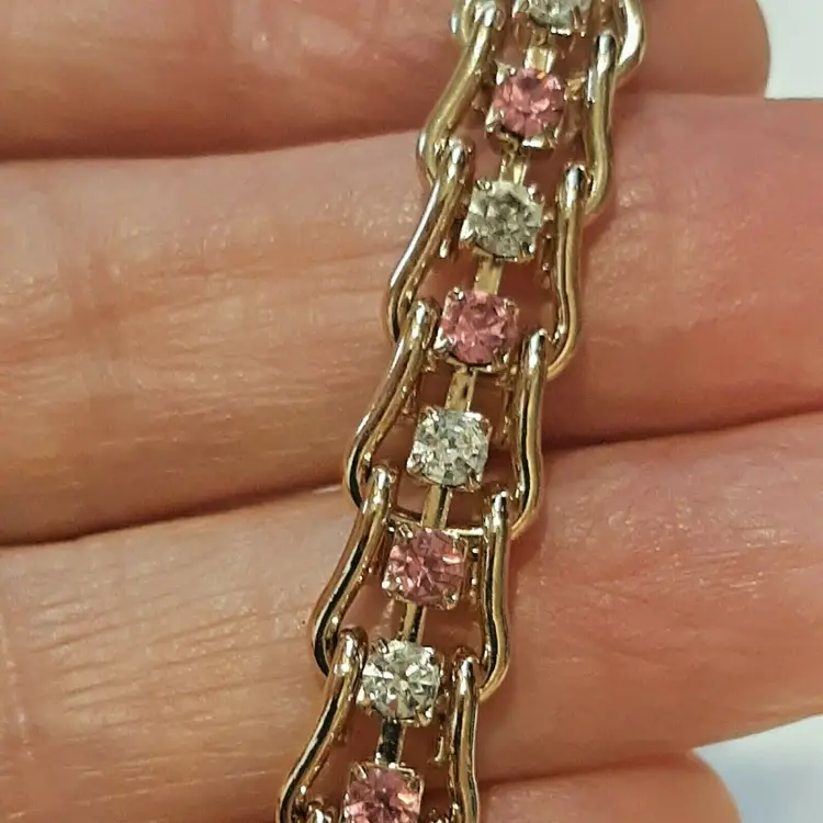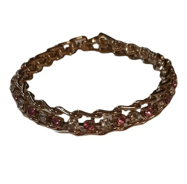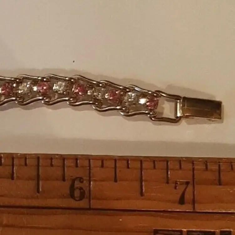 – Base Metal: Unknown – Main Stone Color: Pink – Metal: Unknown – Main Stone Shape: Round – Item Length: 7.2 in – Length (inches): 7 INCHES – Main Stone: Crystal – Main Stone Creation: Simulated – Shape: Round – Main Color: Pink – Setting Style: Prong – Secondary Stone: Crystal – Brand: Unknown – Style: Chain, Tennis – Country of Origin: Unknown – Color: Pink – Closure: Box – Theme: Art, Bohemian, Fairytale & Fantasy – Type: Bracelet