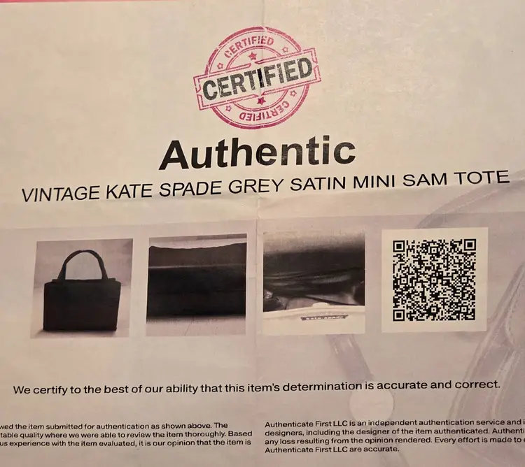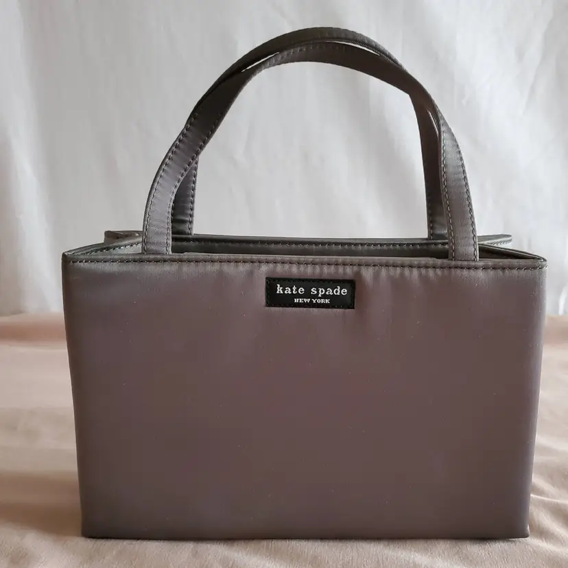 Authentic Vintage Grey Kate Spade Satin Mini Sam Tote. Very good condition, see photos. Includes COA