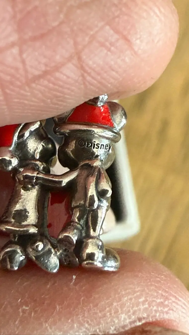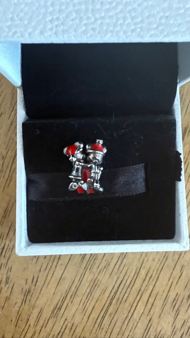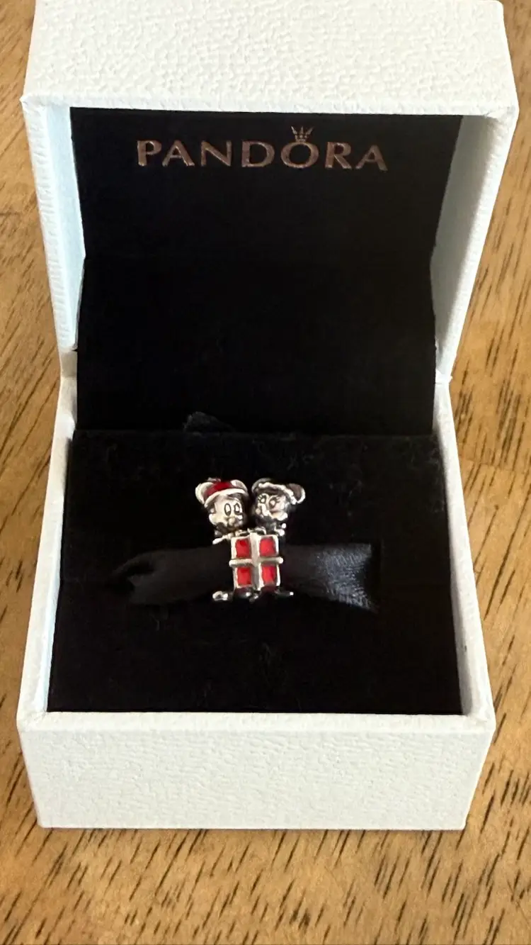 Authentic PANDORA Mickey and Minnie Christmas Present Charm. Made of 925 sterling silver and featuring intricate details, this charm is perfect for any Disney lover. Original Box