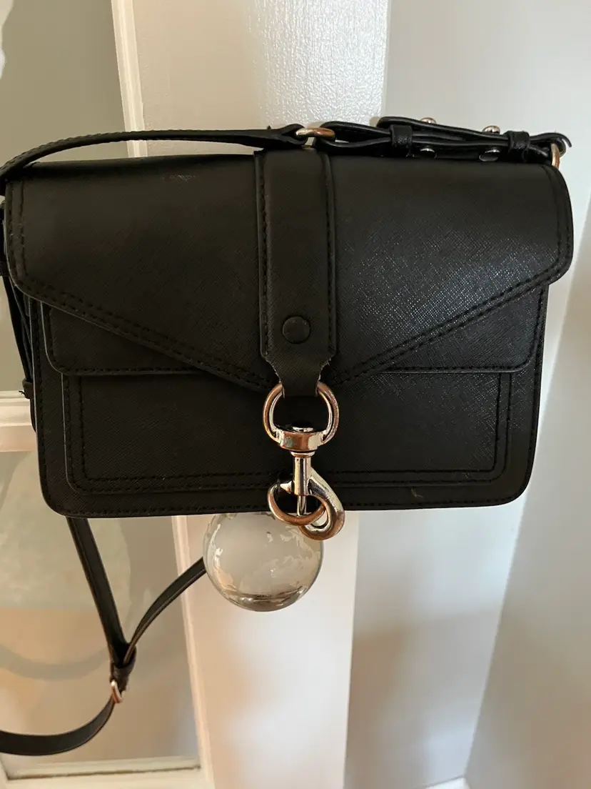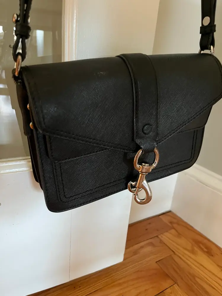 Save me from myself -I want to keep this bag but I’m offering it to you! You are looking at a 100% Authentic Rebecca Minkoff Black Hudson Moto Mini Crossbody Bag. This bag is in very good condition. This gorgeous structured bag is crafted of a saffiano leather. There is a front magnetic flap pocket and buckle with a pre-owned patina. The long strap is adjustable. Exterior: slight white blemishes on edges, but other than that no major wear or tears. Interior: flawless, opens to a black lining in a canvas material, divided interior. This bag measures in inches approx: 8.5”W x 5.5”H x 3”D strap drop 22”. Please view the images in detail I think this is a stunning find!