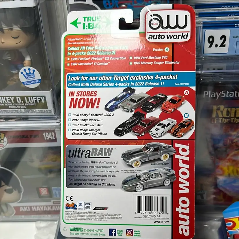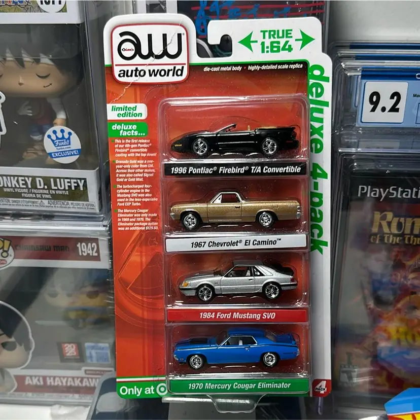 AUTO WORLD 1/64 DELUXE 4-PACK TARGET EXCLUSIVE PONTIAC CHEVY FORD & MERCURY NEW
