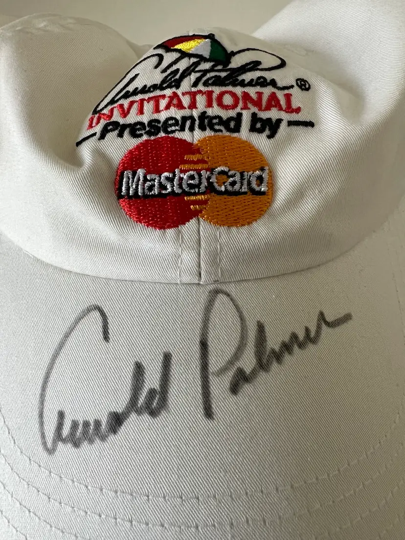 Authentic signed Arnold Palmer hat with 8x10 poster from the invitational Tournament at Bay Hill. Comes with a poster 8x10 from the tournament . Hat is Ahead brand… in good condition with some discoloring from storage. Autograph is in good condition as well with very little fading.