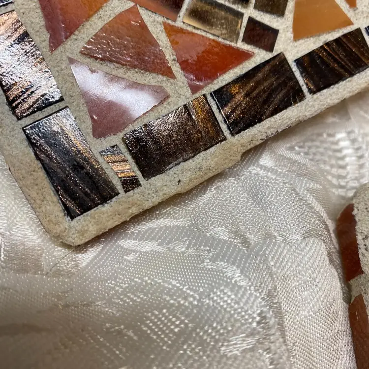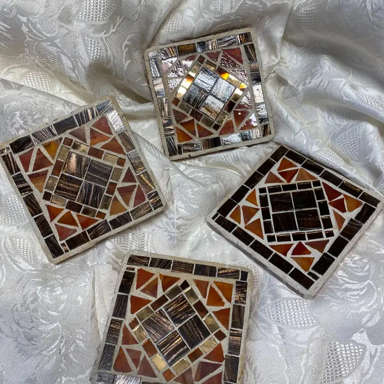 Autumn Delight Original Mosaic Coasters, copper and bronze mirror, stained glass, reflective and glittery