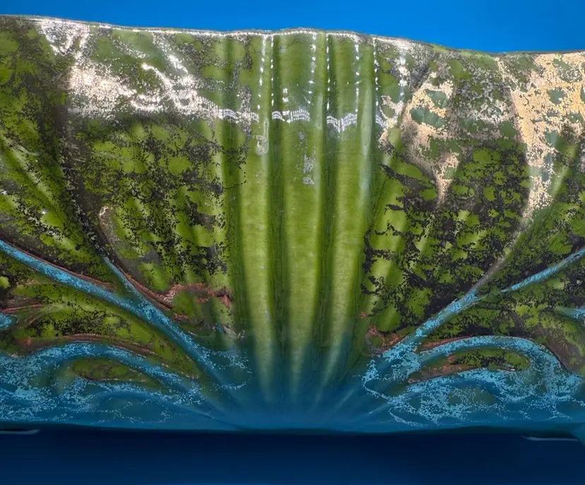 Description: Maurice of California Pottery was founded by Maurice Pechman, an Auschwitz Concentration Camp Survivor, who immigrated to the United States in 1950. Maurice of California Pottery is known for it's MCM asthetic, vibrant colors, and abstract designs. Identification of the piece is authenticated by the Mold Letters that are imprinted on the base of the piece. The mold letter indicates the mold used, the line number indicates the individual piece.