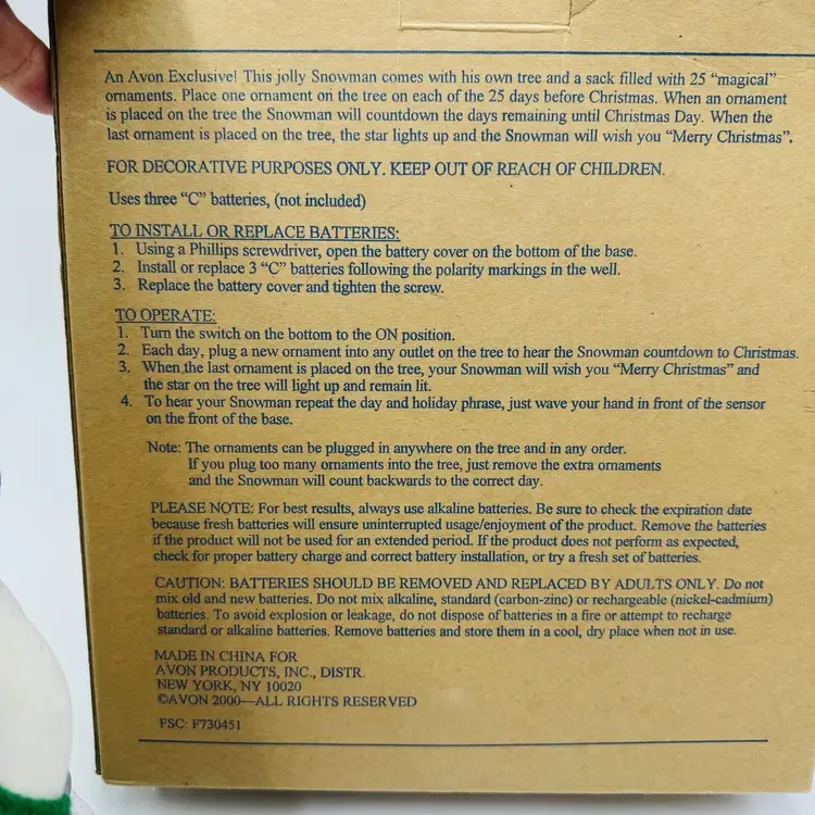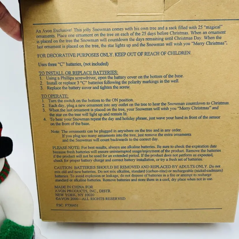 Avon A Wonderful Countdown to Christmas Talking Lighted Snowman Advent Tree