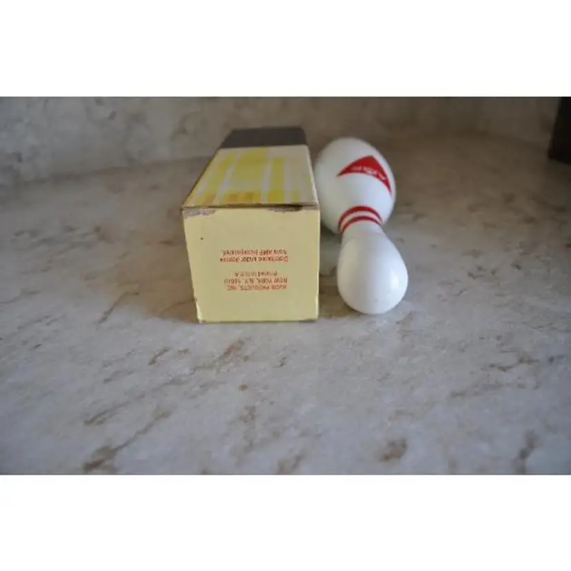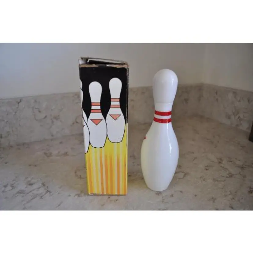 Vintage Avon Strike! Empty bowling pin decanter which used to contain 4 FL. OZ. of Wild Country after shave. It measures 6 3/4" tall and 2" wide and is in great vintage condition Comes in the original box which shows signs of wear - see photos for details as they are part of the description Label is intact Has AMF logo
