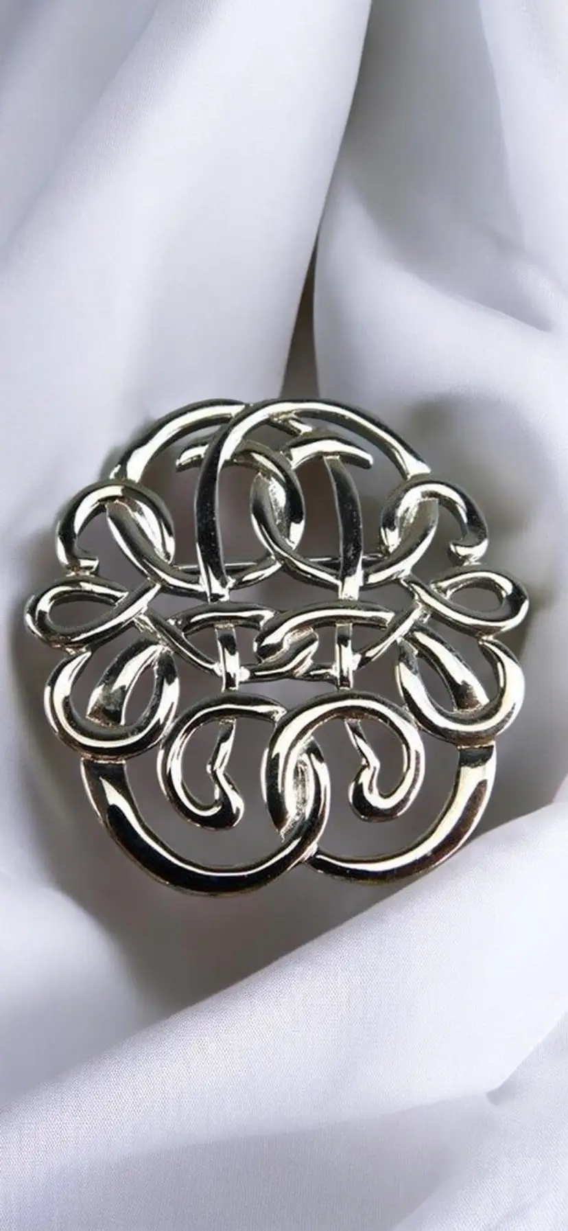 Avon brooch / pendant in polished silver tone and signed with the dot in a square.