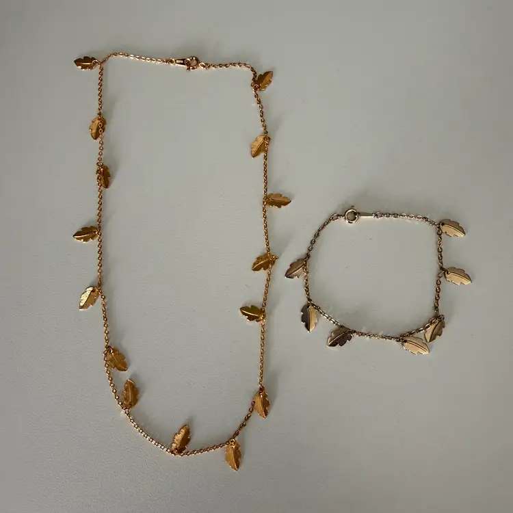 Avon Gold Toned Leaf Necklace And Bracelet Pre-owned