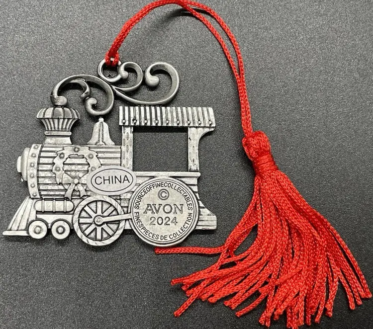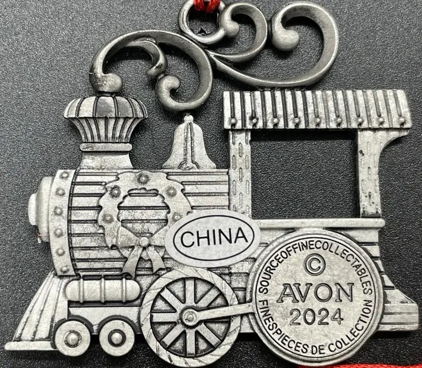 Trim your tree with a train, this year’s annual collectible ornament, embossed with the 2024 Avon Fine Collectibles stamp on back. 2 ¼" L x 2" W. Pewter, acrylic, polyester. Imported.