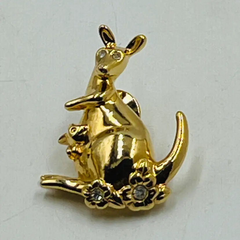 Avon Kangaroo with Joey Pin 1990s Vintage Gold Tone