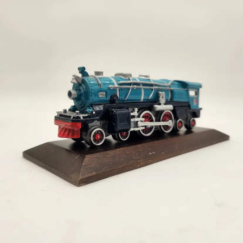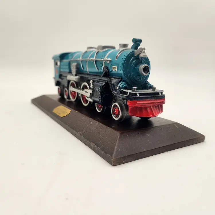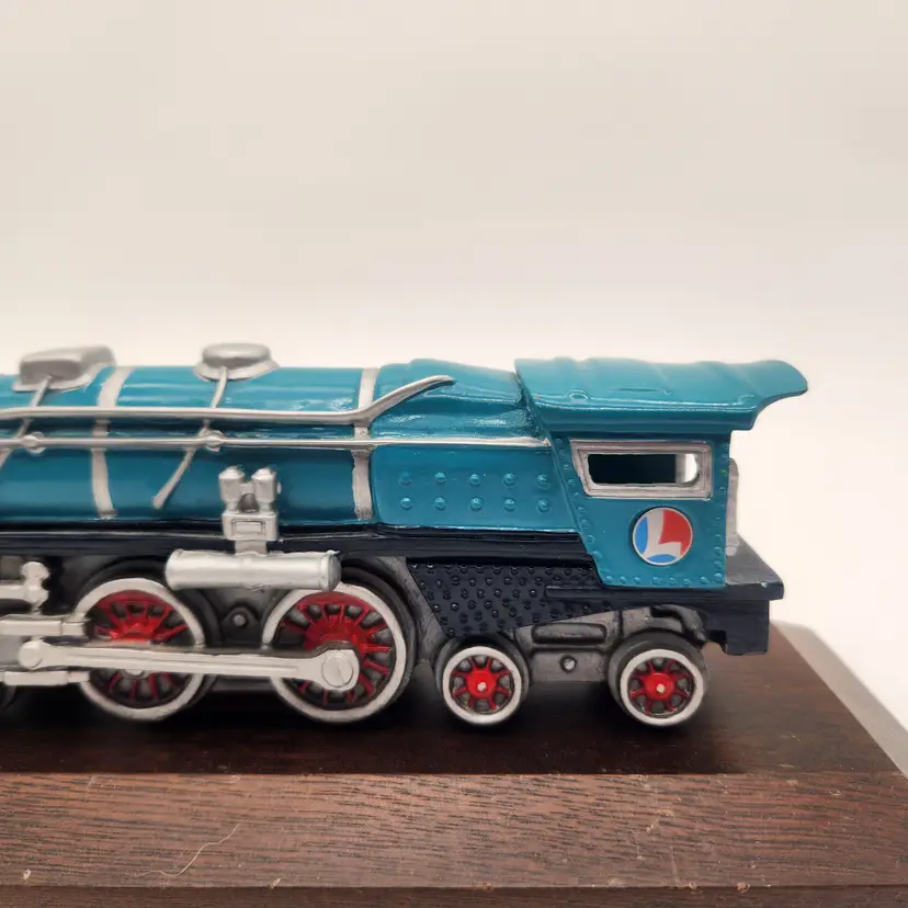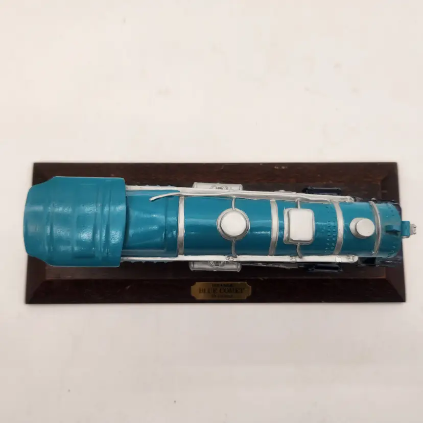 Perhaps the most famous passenger train in American history (even featured in the June 3, 2007 episode of The Sopranos). the Blue Comet was operated as a luxury passenger train by the Central New Jersey Railroad between Jersey City and Atlantic City from February 21, 1929 through September 27, 1941. Named The Blue Comet (also called Symphony in Blue) because the "locomotive, tender, and coaches sported a unique royal blue paint scheme designed to evoke images of celestial bodies speeding through space". (Harvard University) Authenticity: Avon Source of Fine Collectibles Series, Lionel Trains Inc. Licensed This hand painted pewter model, dated 1991, features detailed rivets, spoked wheels, and the iconic L logo. Excellent Condition: Model in perfect condition. Wooden base has some wear. Measurements: Engine on base - 10" length, 4" wide, 3 1/2" tall Keywords: Railway Decor, Vintage Avon, Railfan Gift, Diecast Metal, Collectible Americana