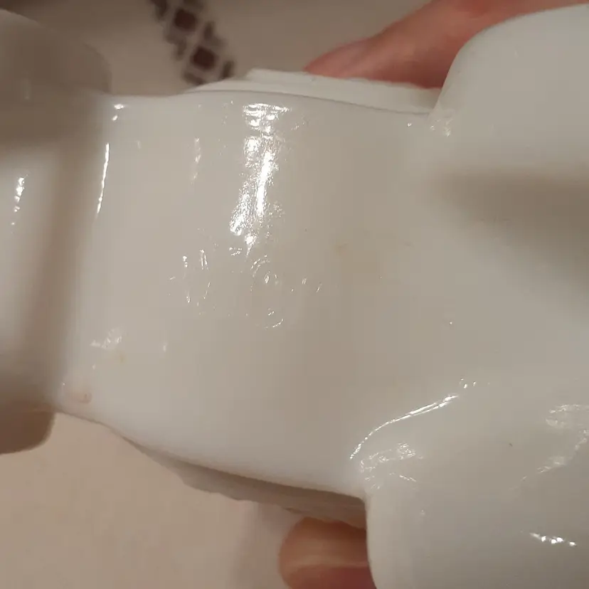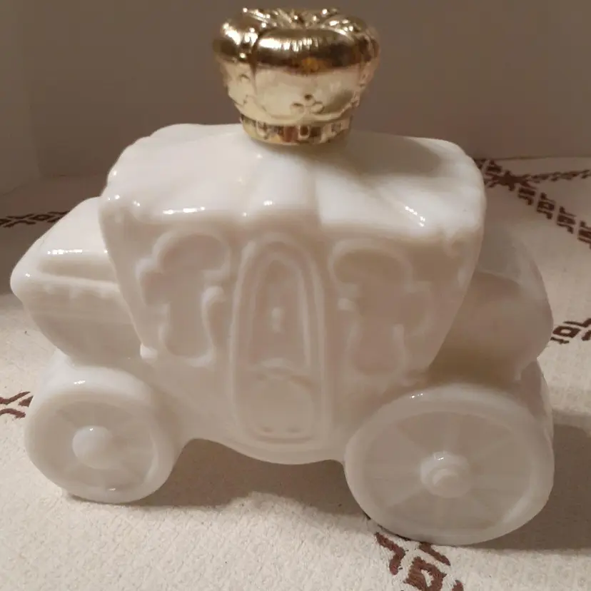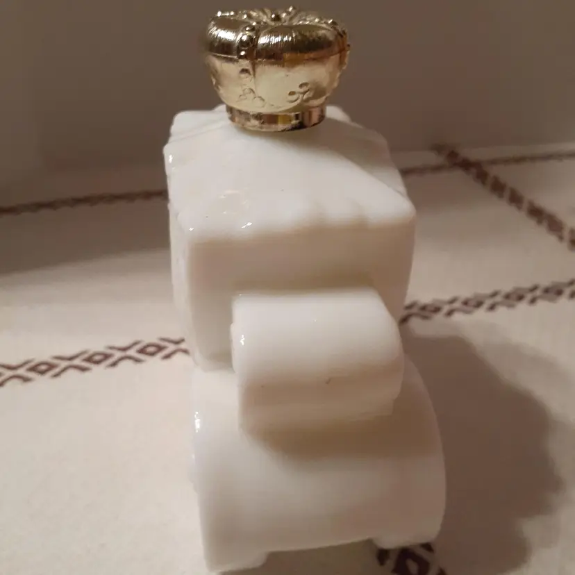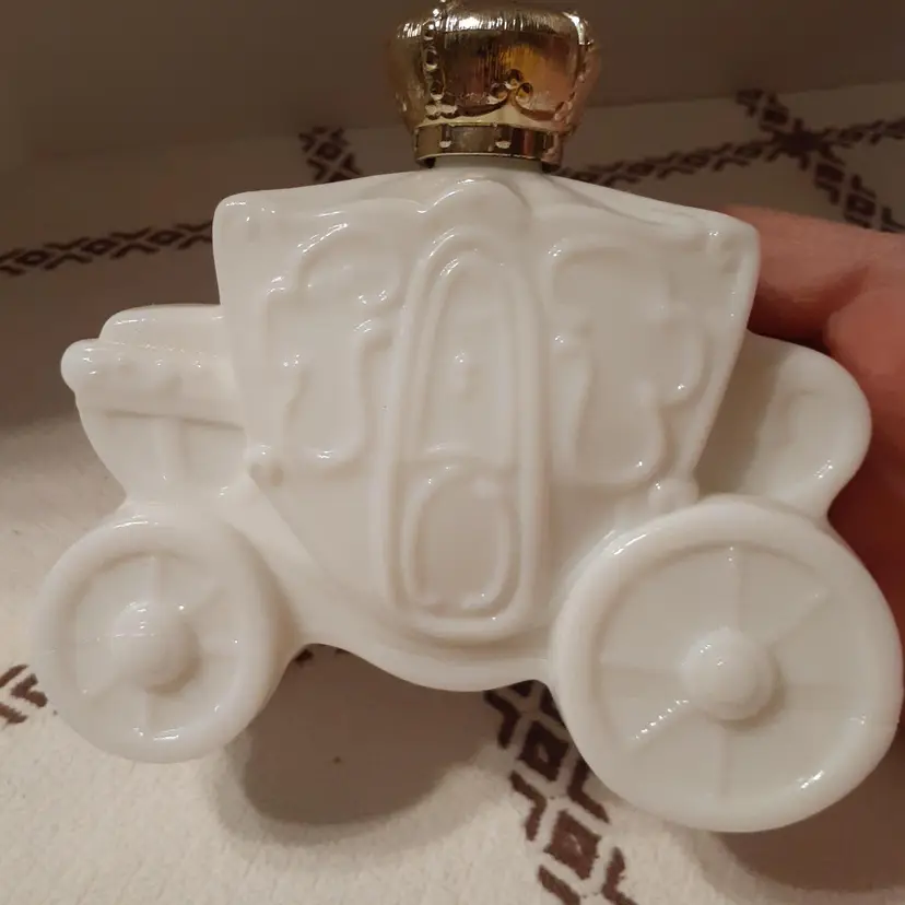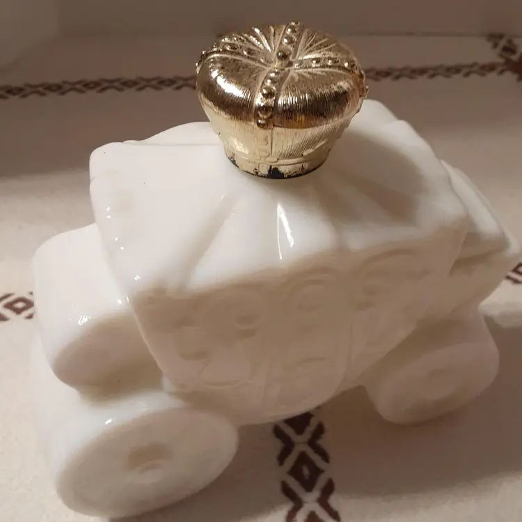 Empty bottle, no chips or cracks, some paint wear on gold crown. Roughly 4.75x4.5x2"