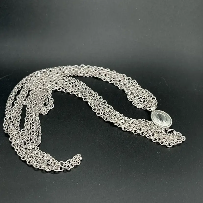 Avon Multi Strand, Silvertone Chain Necklace 18-24โ€ Long