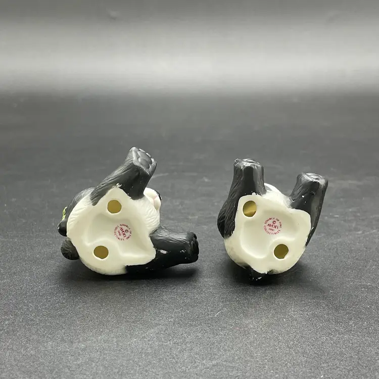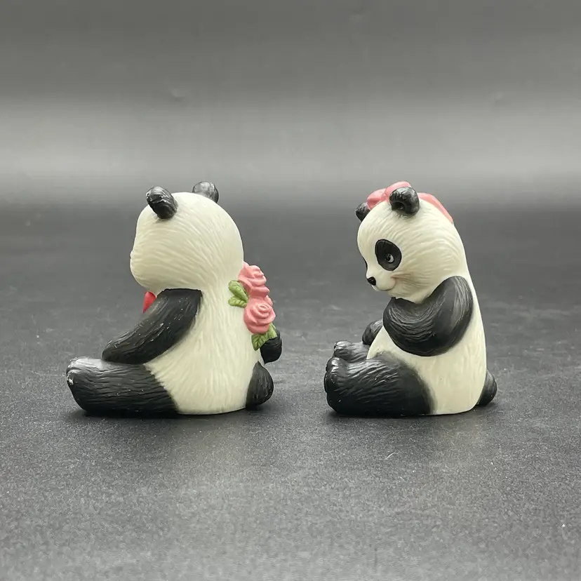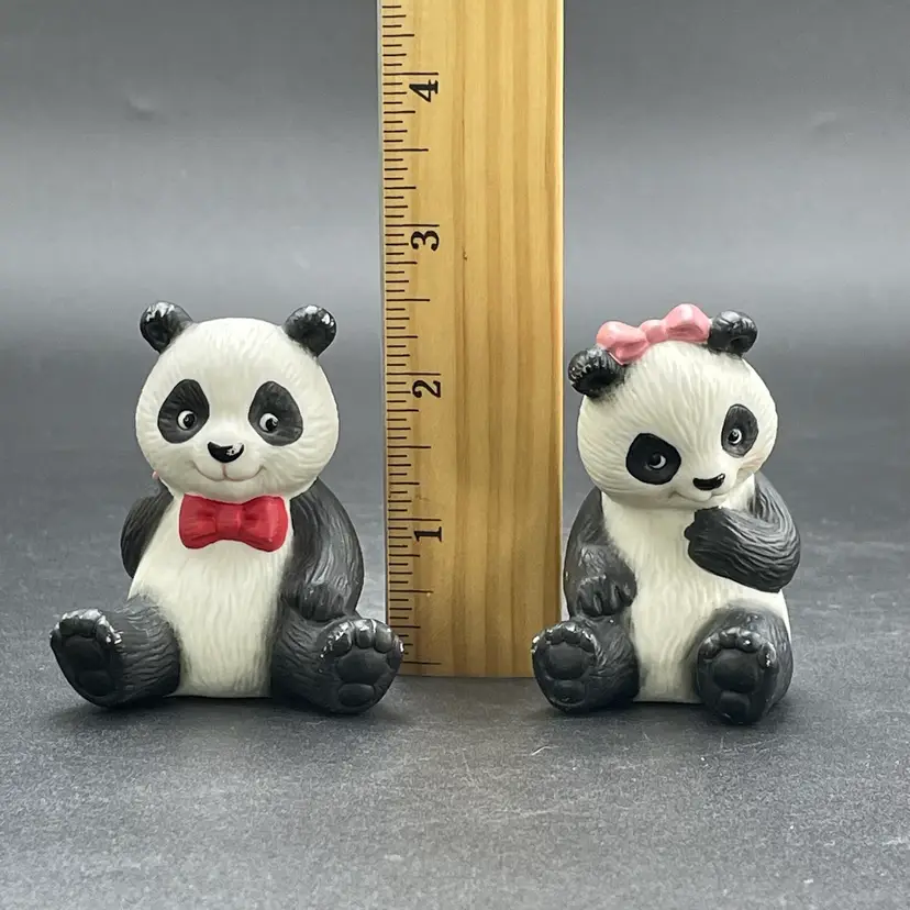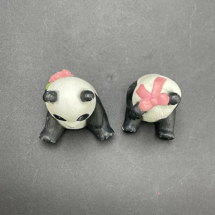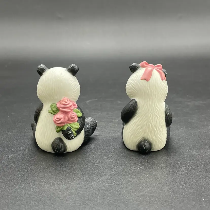 This is a vintage 1990 set of 2 Avon Panda Sweetheart bear figurines. Each measure approximately 2.5" tall. There is a little paint loss on each due to age and use. No box. No chips or cracks.