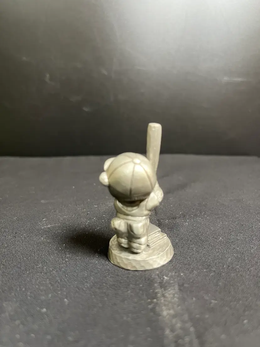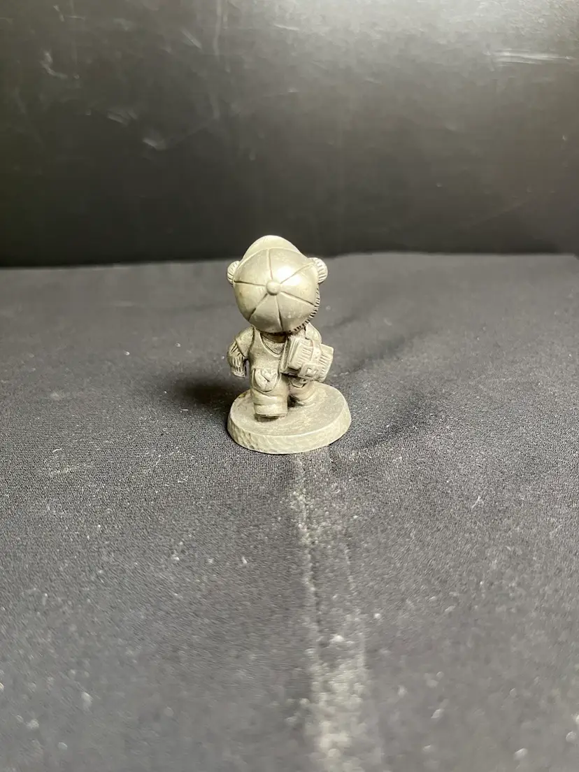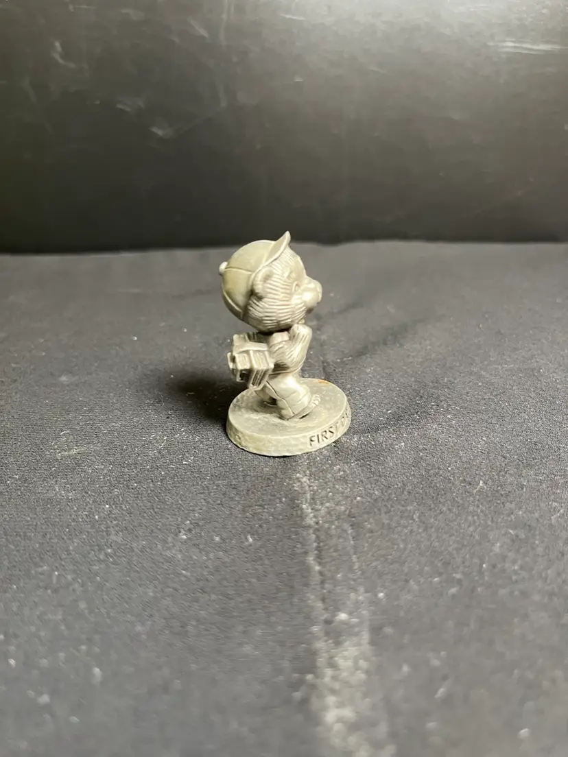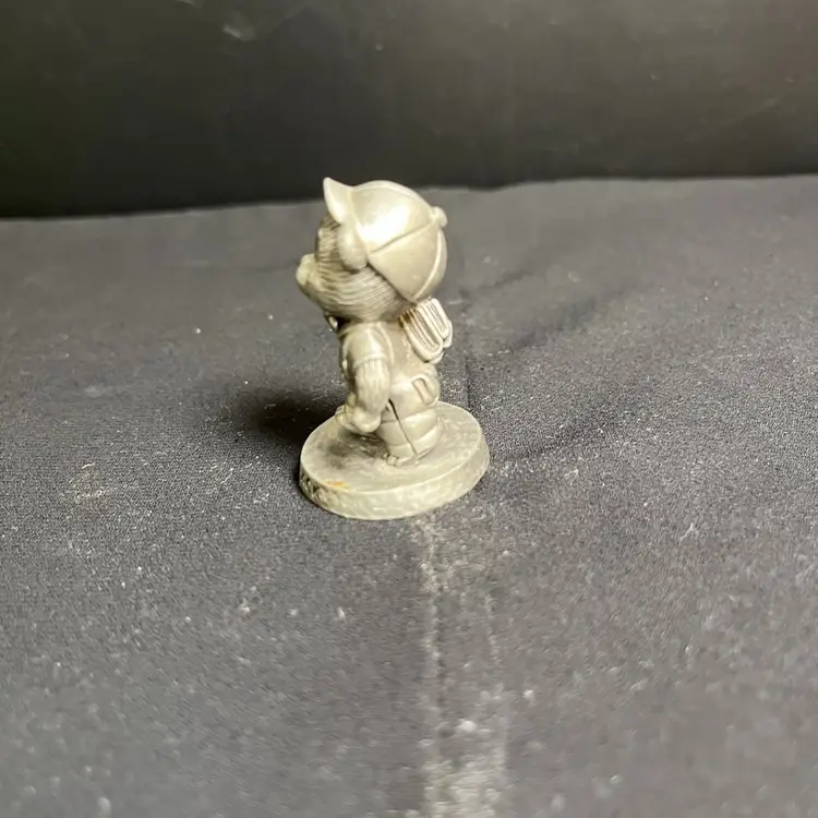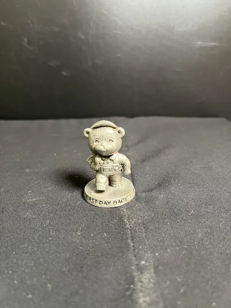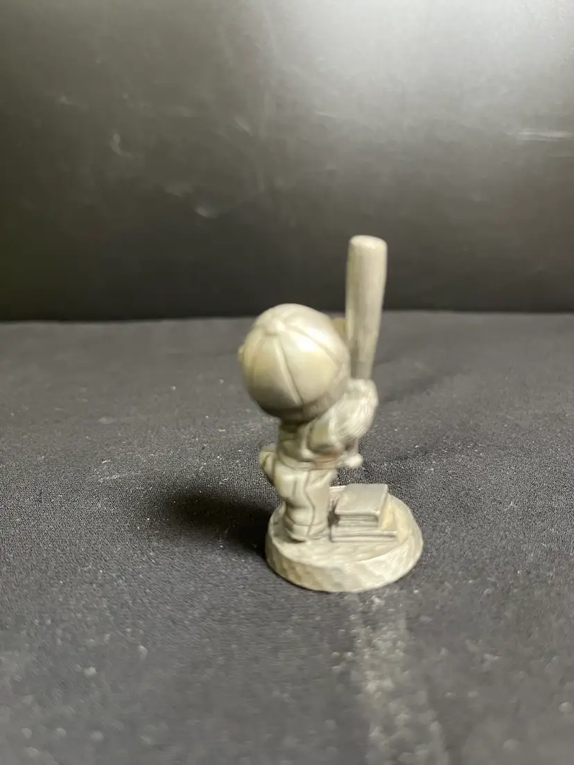 Absolutely adorable. There are no call outs on these pewter figurines. Avon is stamped on bottom. Measures approx Batting Bear: 2 1/8"H, 1"W, Strolling Bear: 1.75"H, 1 1/8"W, together weigh 5.1 Oz