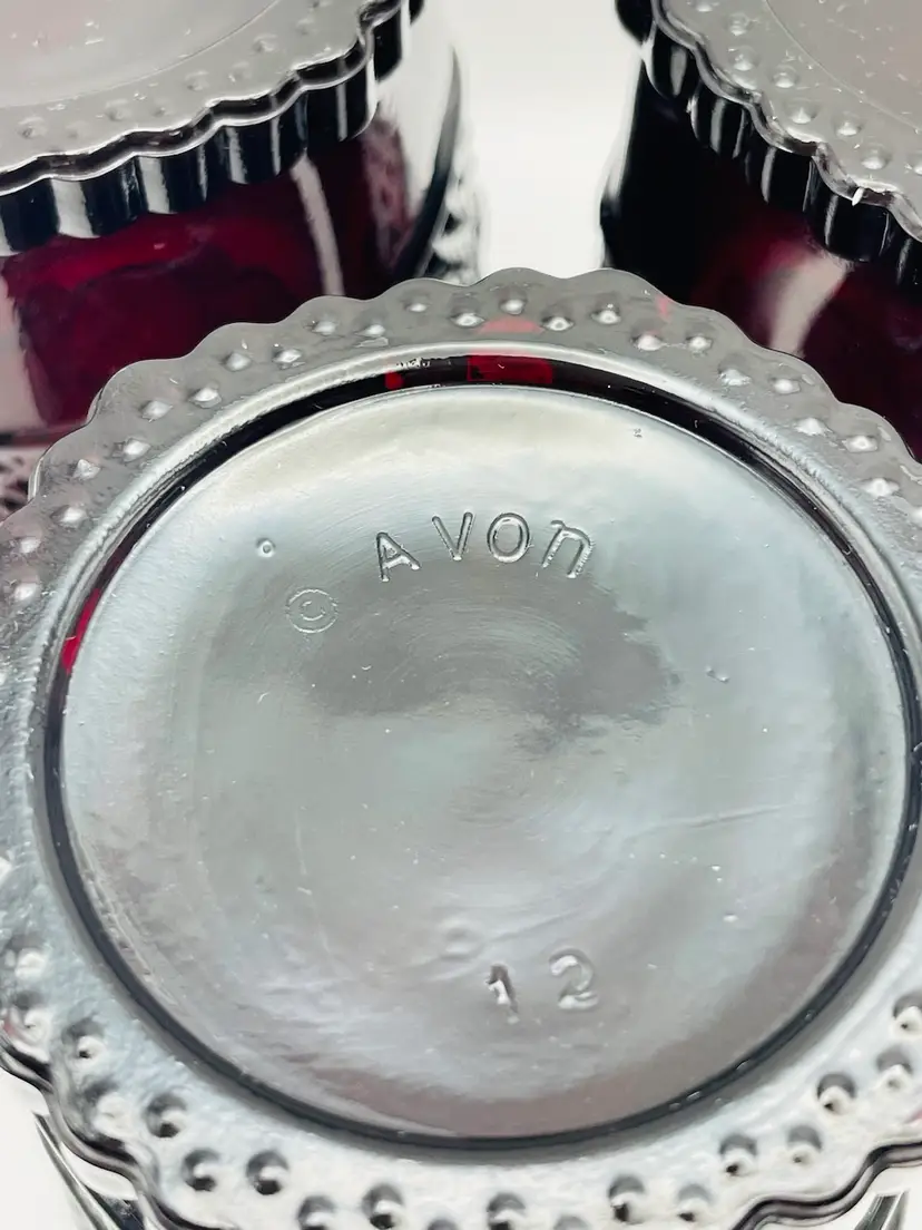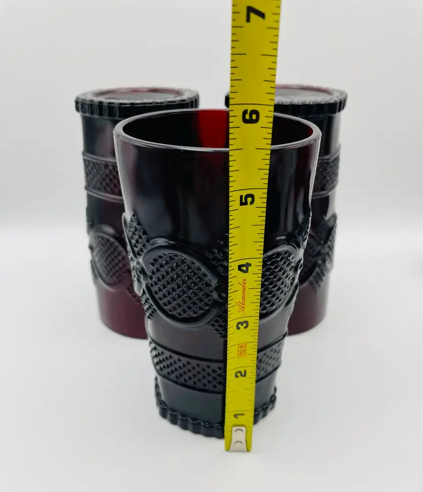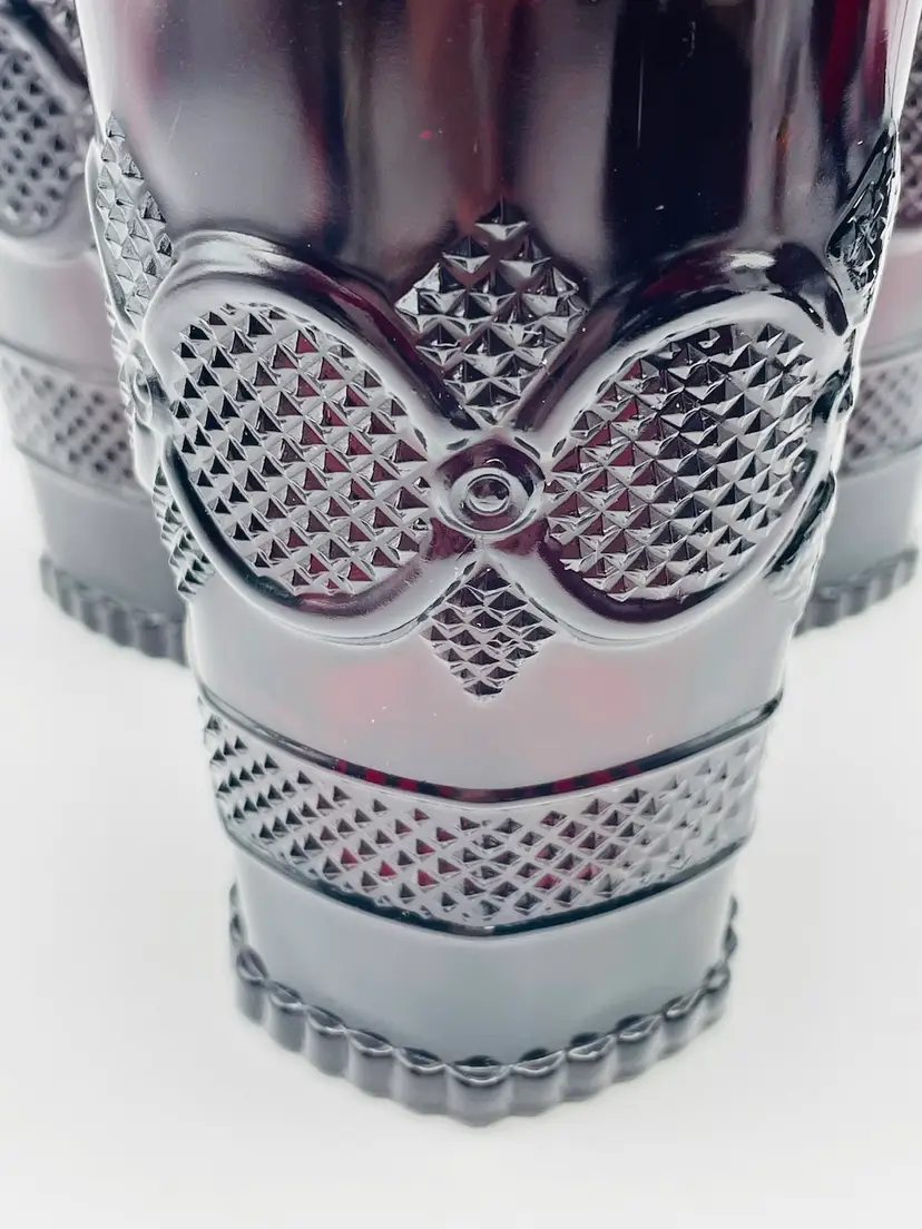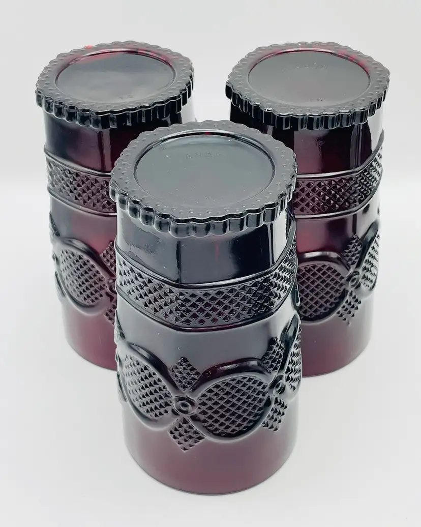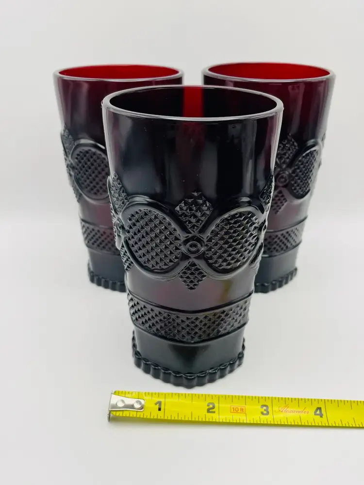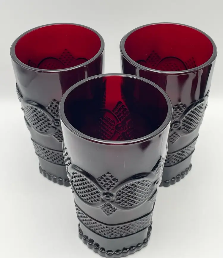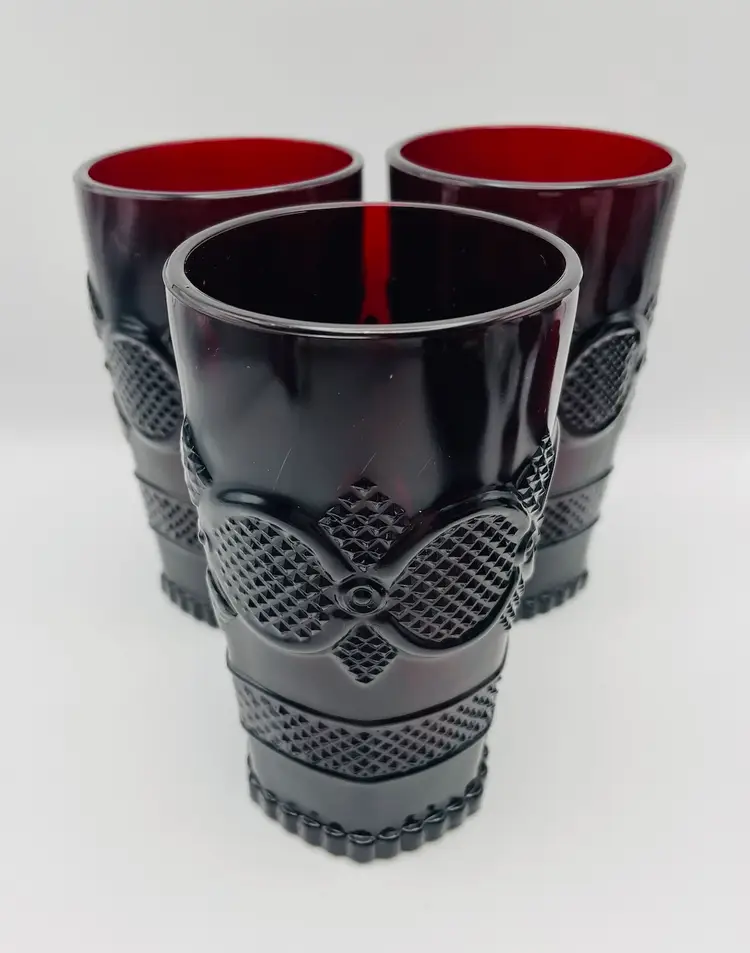 Avon, Set of 3, Vintage 1876 “Cape Cod” Ruby Red Pressed Glass Tumblers
