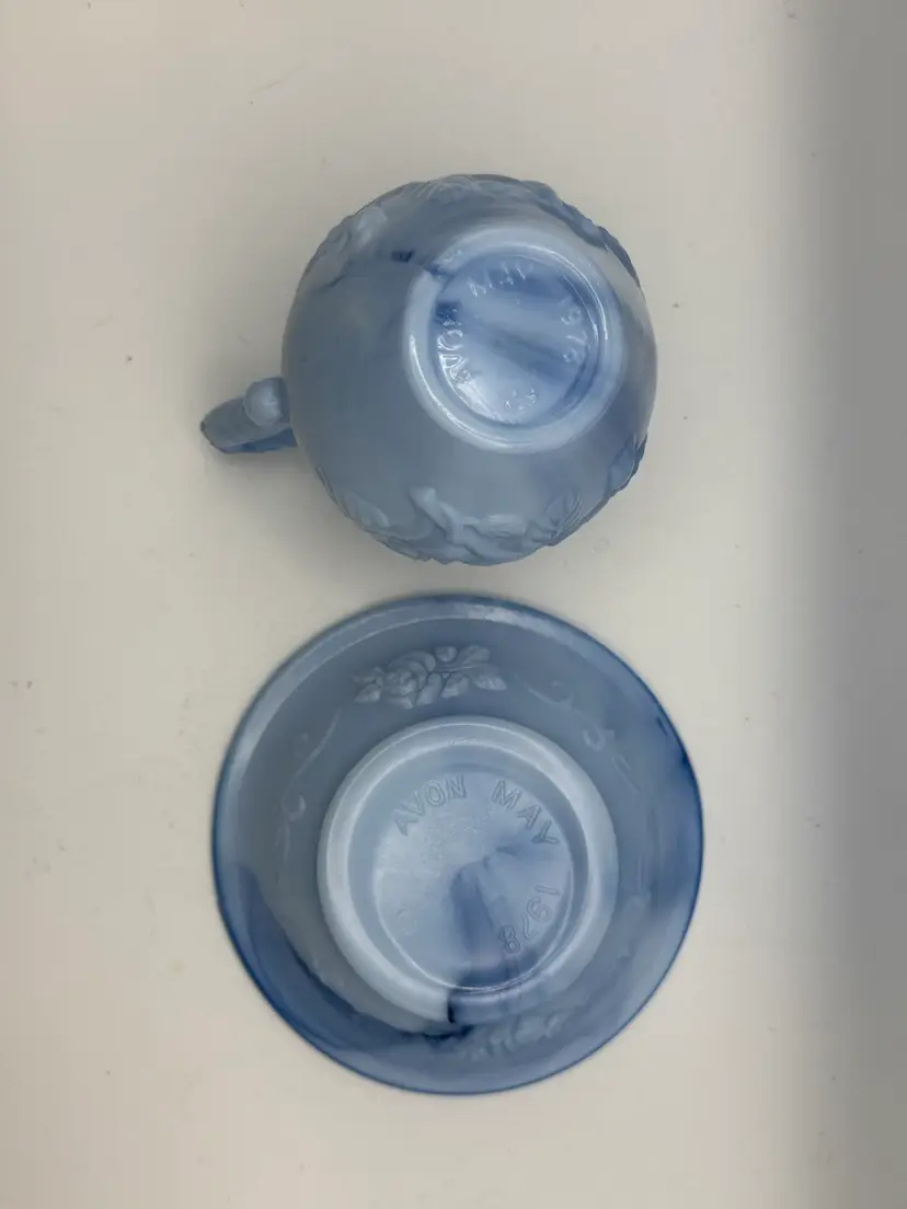 Avon Small Pitcher And Basin - Blue Milk Glass (no Stopper) 7”