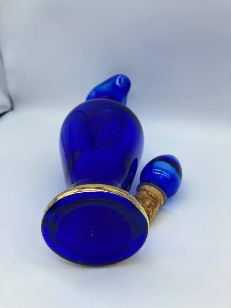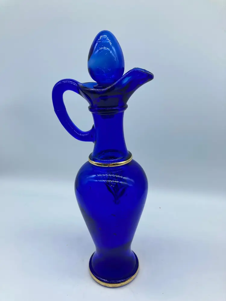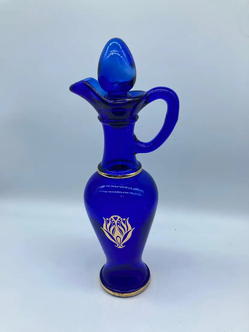 Avon Vintage Cobalt Blue Glass Vase Urn Gold Design and Trim 8", with Stopper