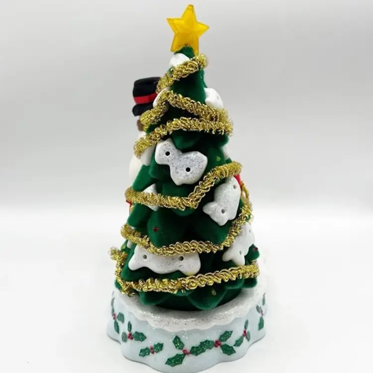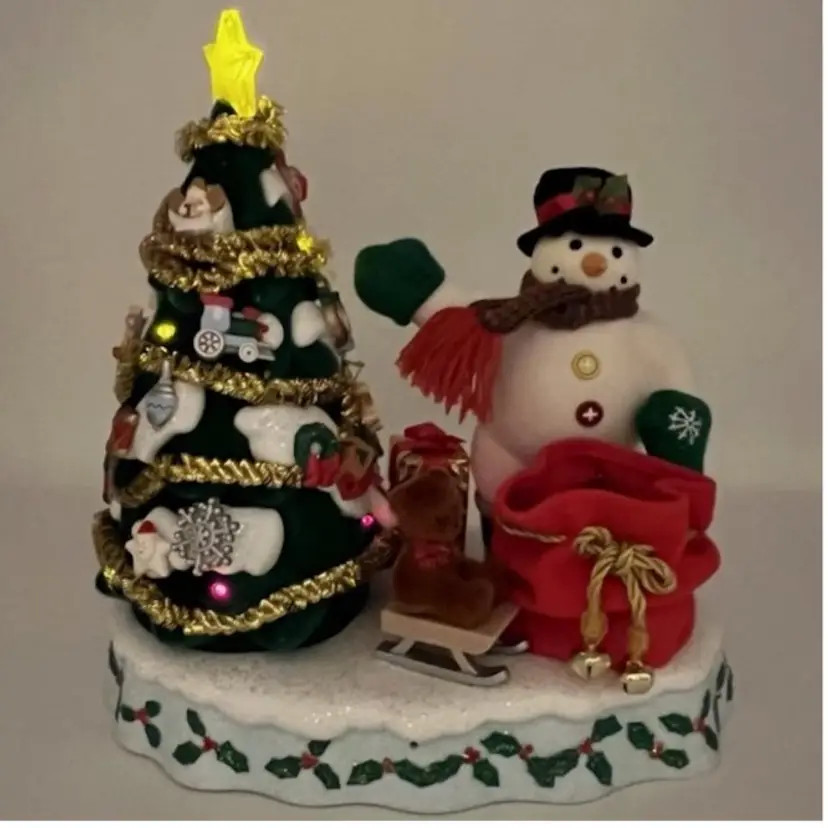 Very good condition, minor wear to flocking, Includes 27 ornaments(2 extra) and Lights and talking Work Great!