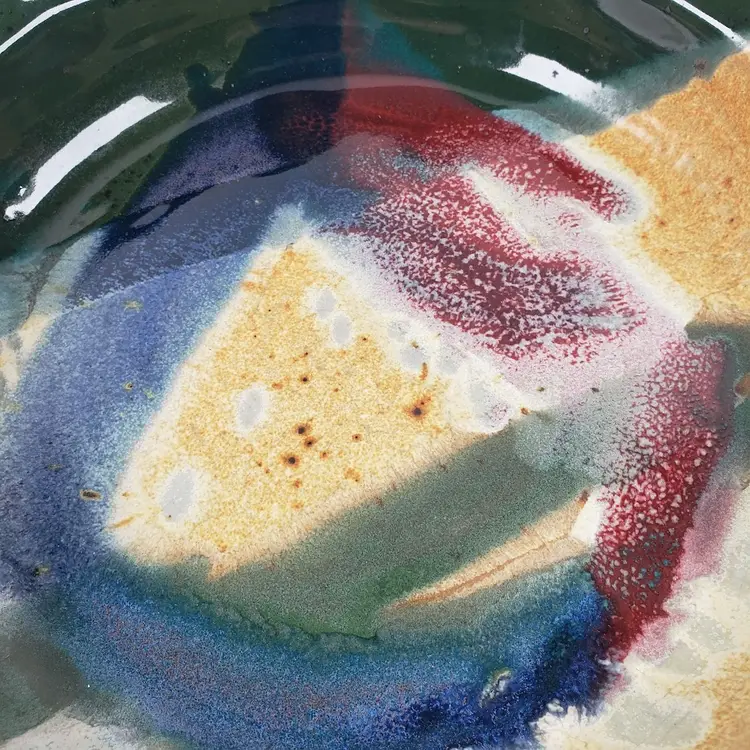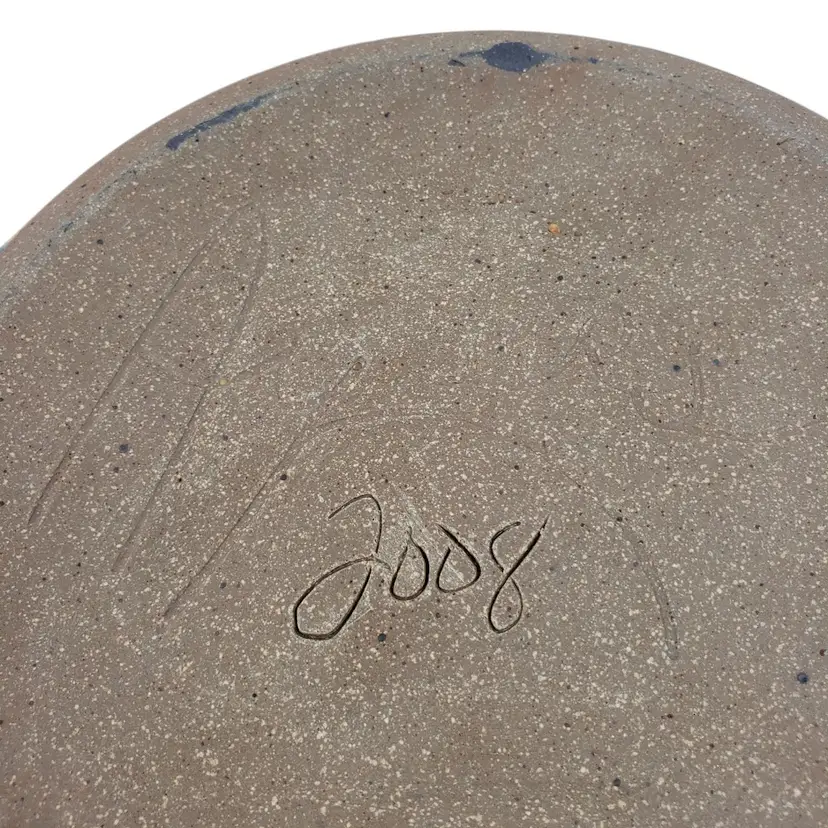 Ayers Studio Art Pottery - Pie Dish Handmade in Missouri, USA Ceramic Beautiful colors 10 5/8" diameter X 2" tall Signed 2006 Heavy! Actual weight - 3 pounds 4.8 ounces Condition - Never used for baking. No chips, nicks, cracks, scratches or utensil marks. Previously used as decorative piece only.
