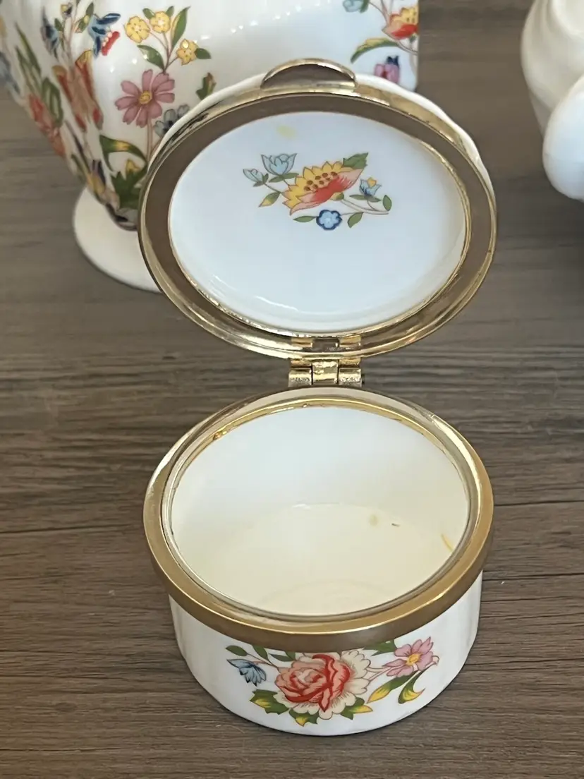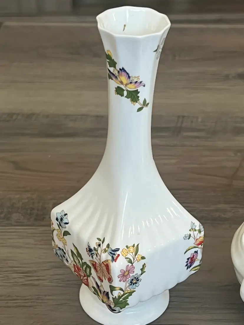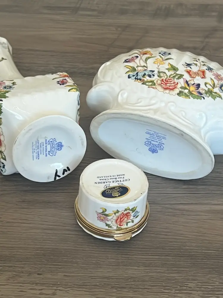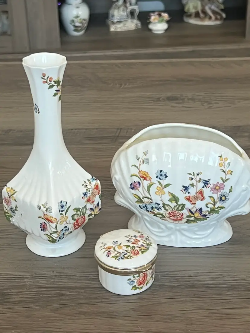 Aynsley Cottage Garden 3-Pcs Set Shell Vase Trinket Box Tall Vase Great condition