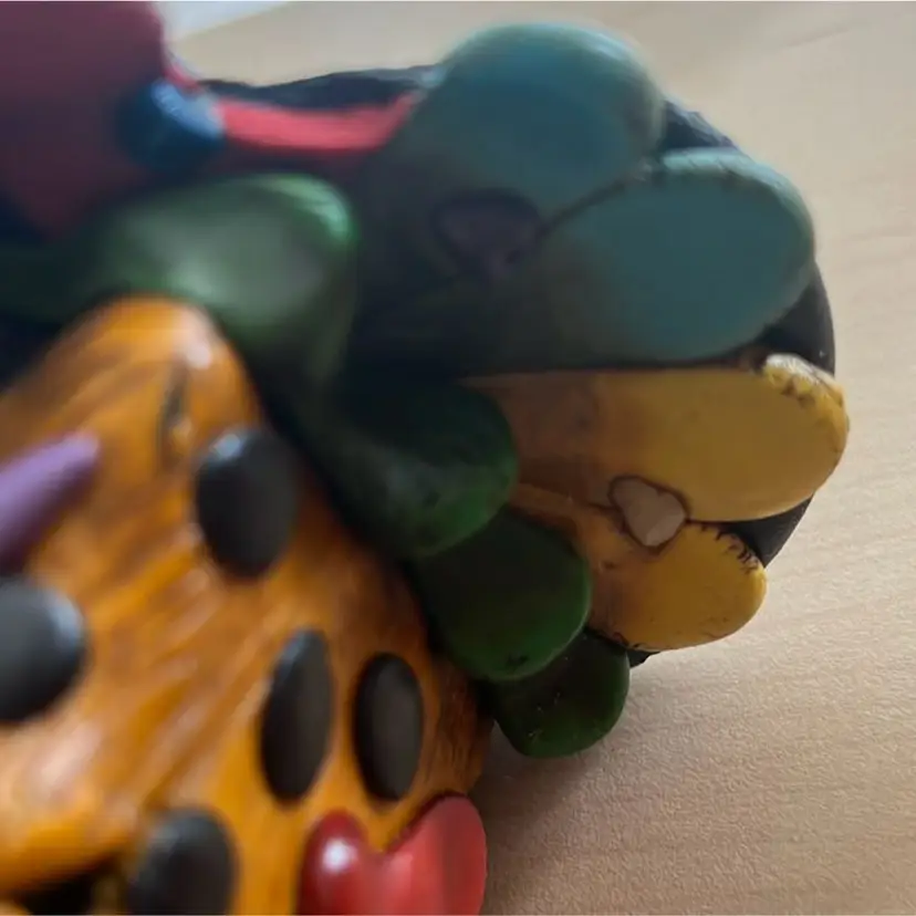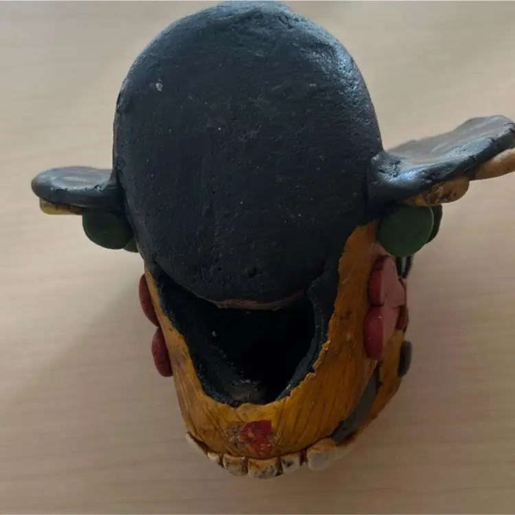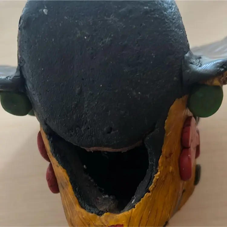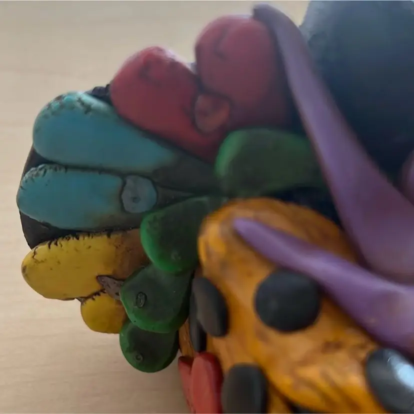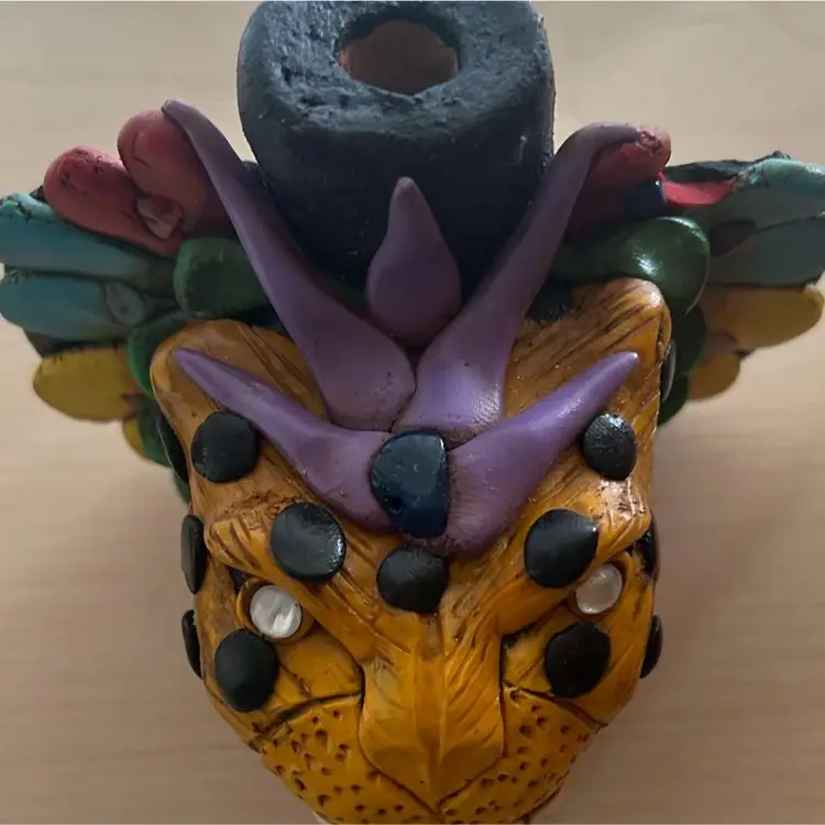 Aztec Mexican, clay pottery, jeweled, jaguar folk art 3 inches tall