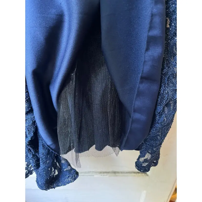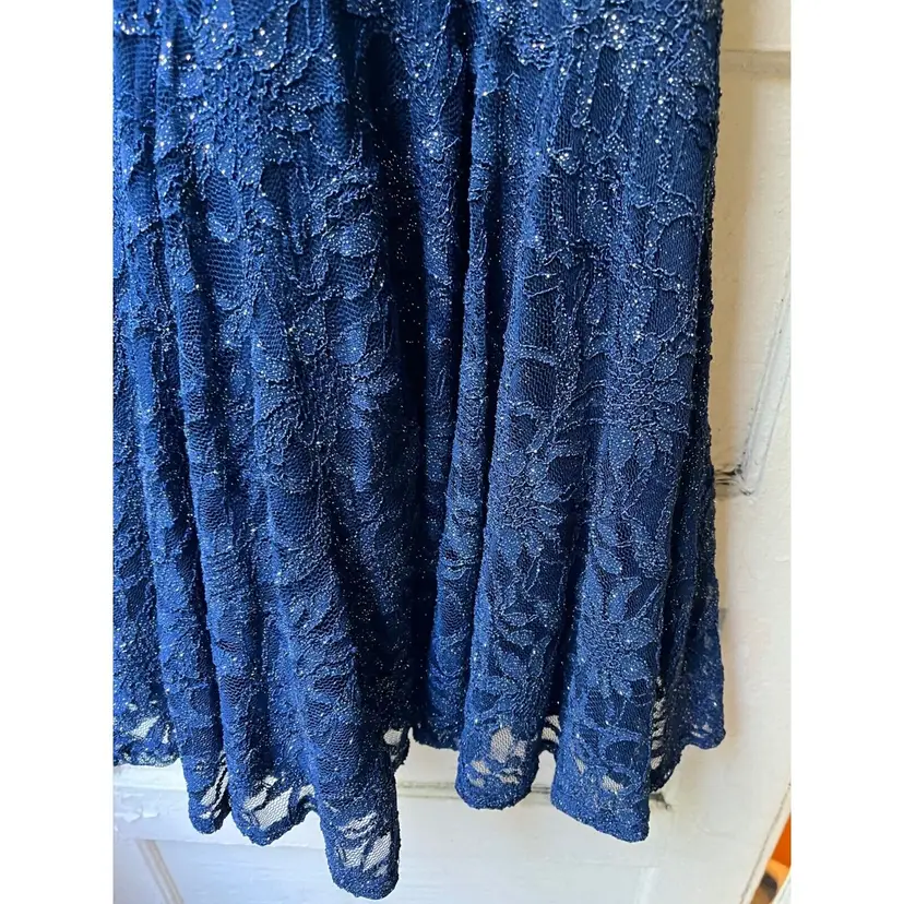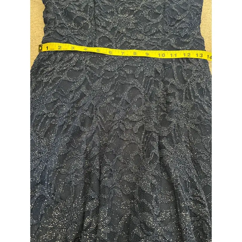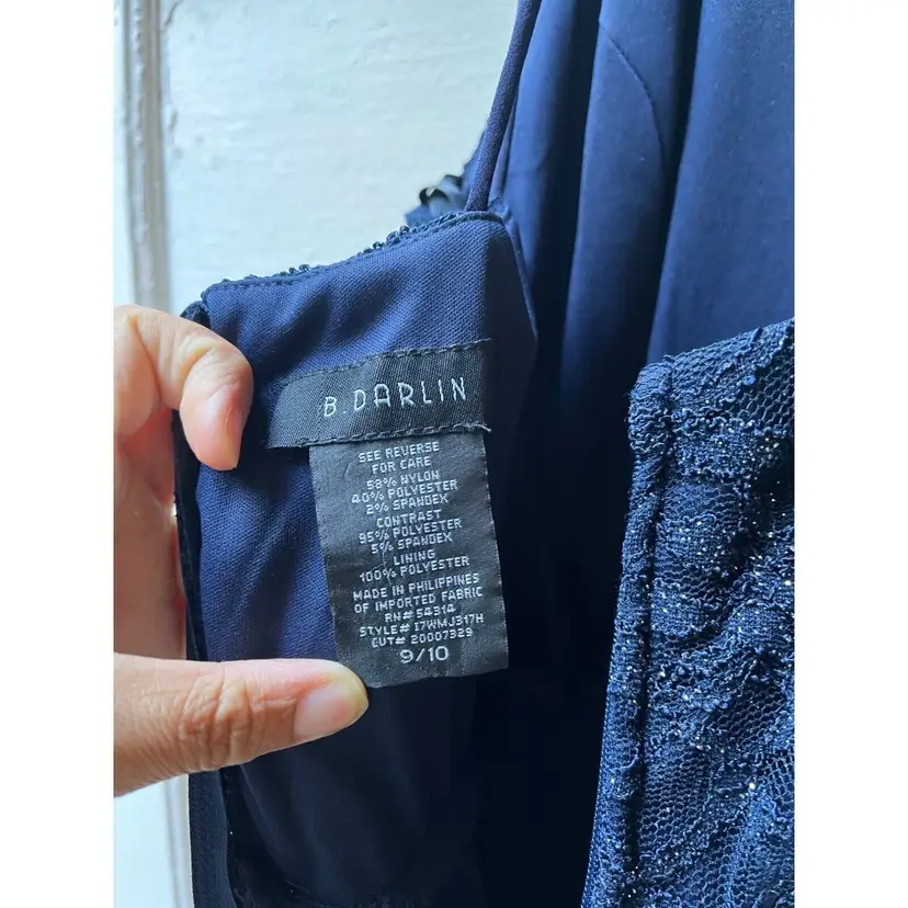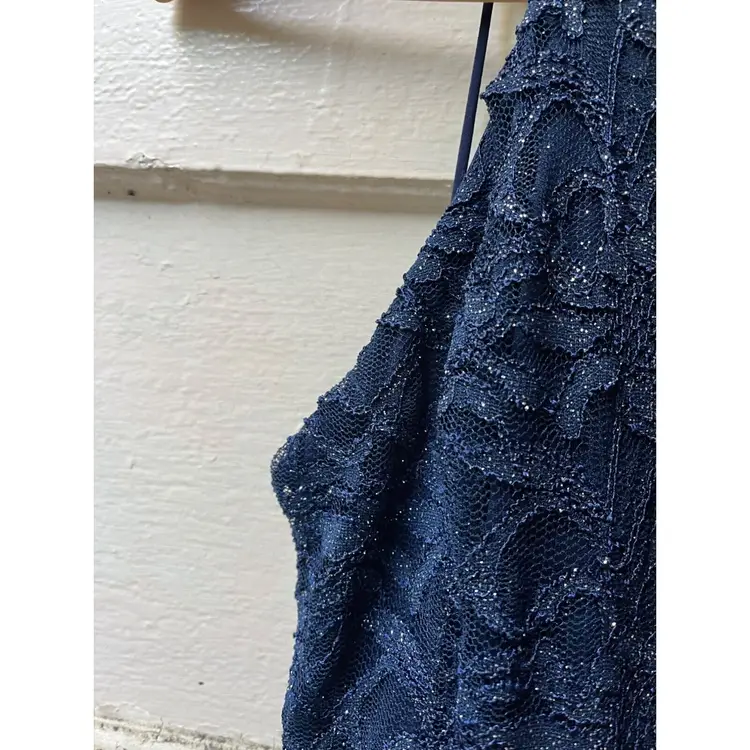 Brand: B Darlin Size Type: Juniors Pattern: Solid Department: Women Sleeve Length: Sleeveless Neckline: Halter Occasion: Party/Cocktail Size: 9/10 Color: navy Style: Fit & Flare Fabric Type: Lace Dress Length: Short