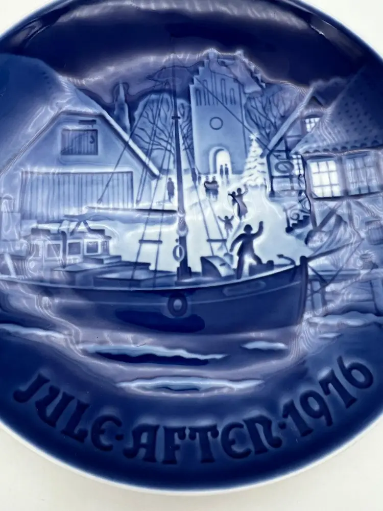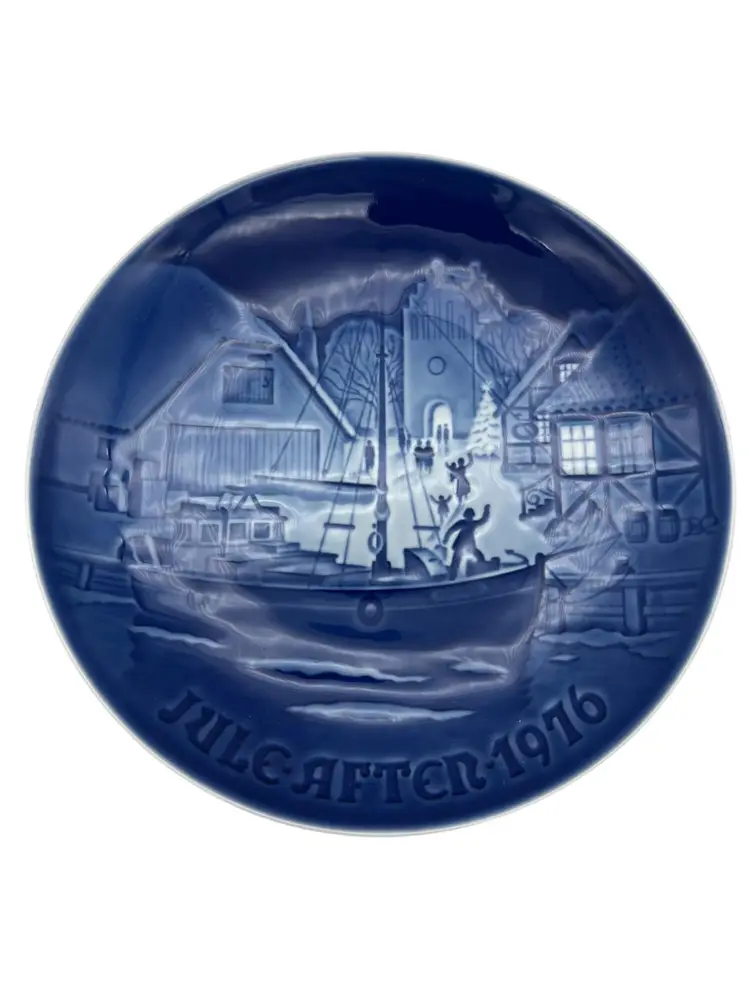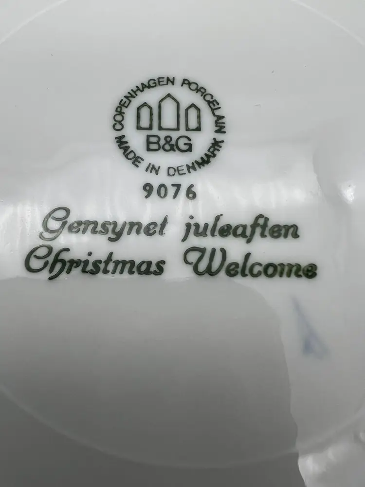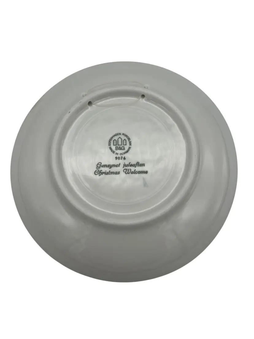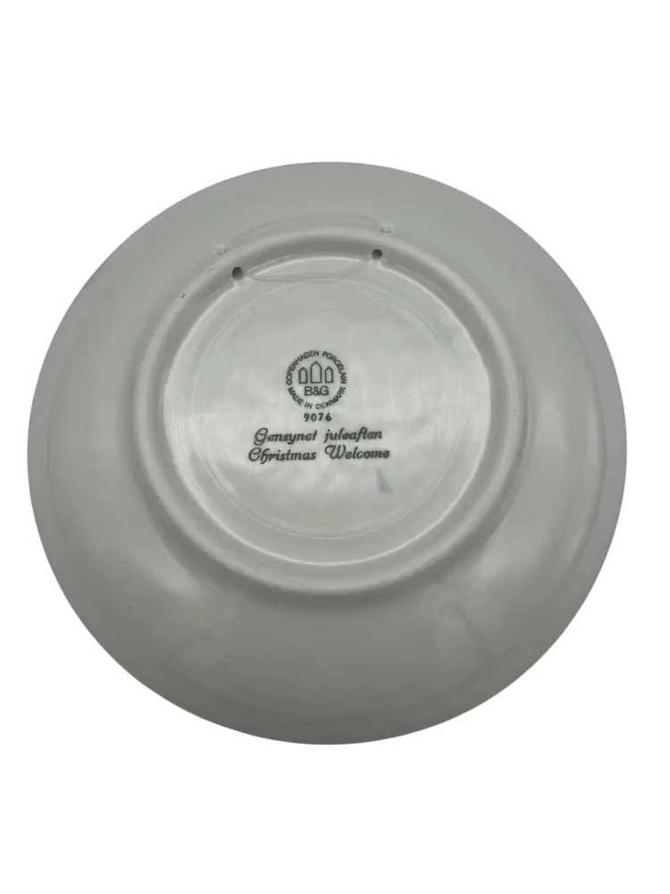Annual 1976 Christmas plate from B & G Copenhagen Denmark (Bing & Grondahl). The plate is titled "Christmas Welcome". It measures approximately 7" across.