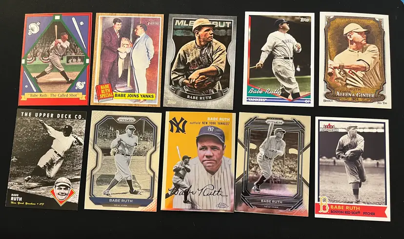 You are bidding on a lot of 10 Babe Ruth baseball cards.