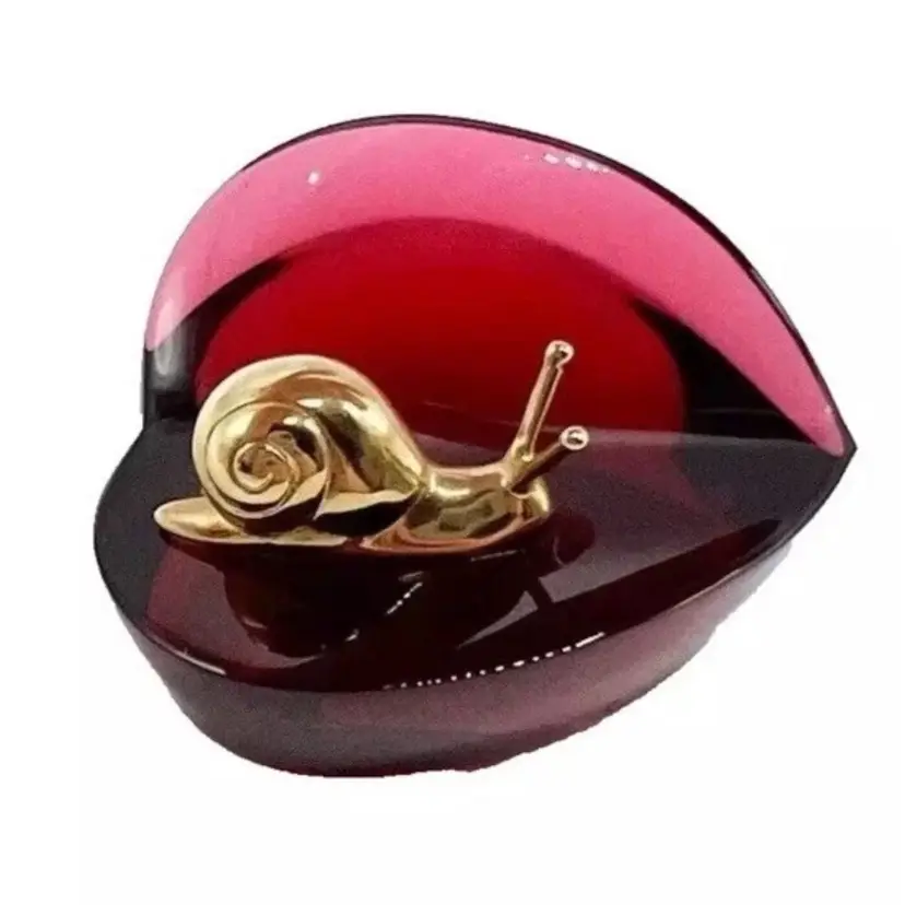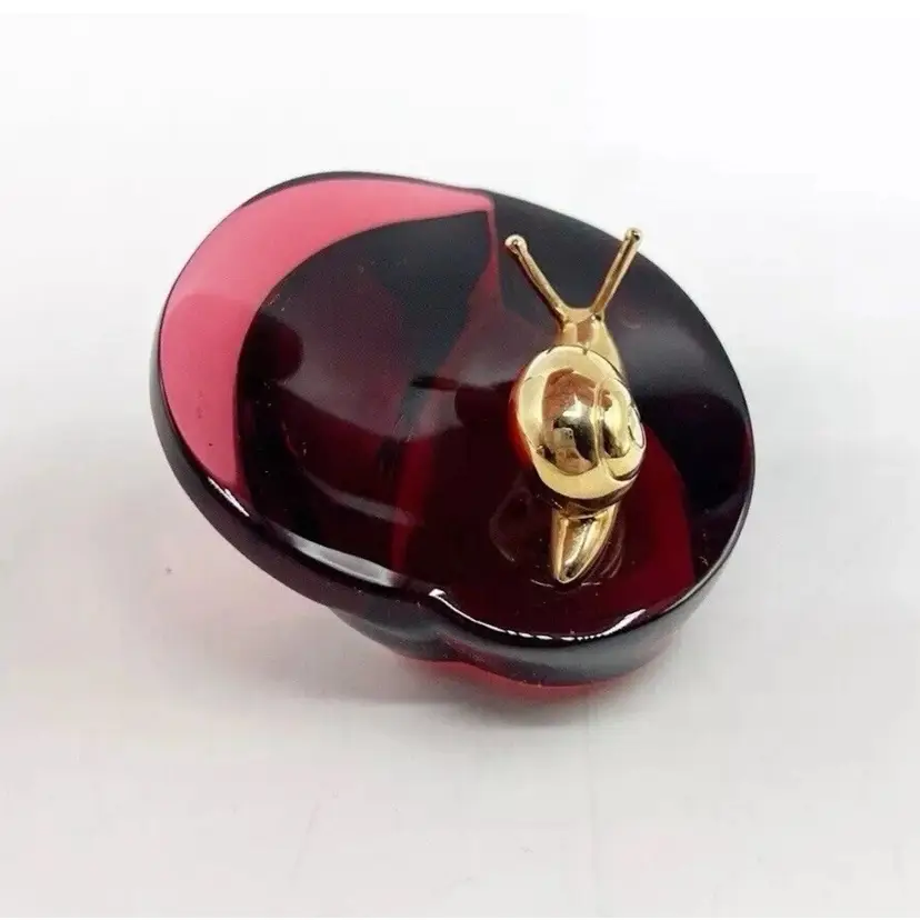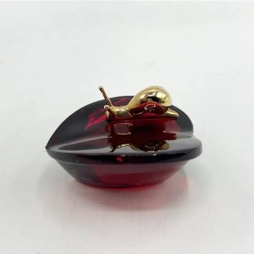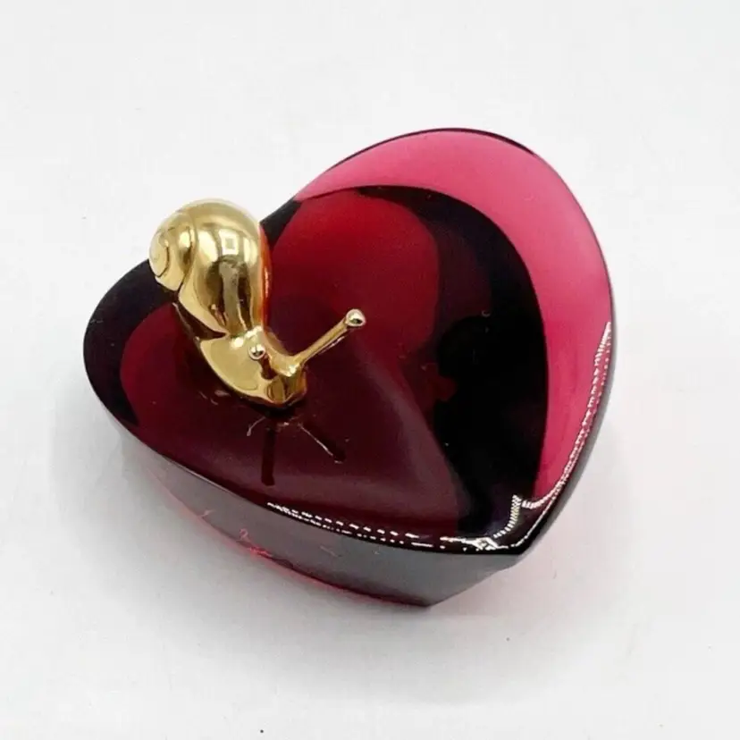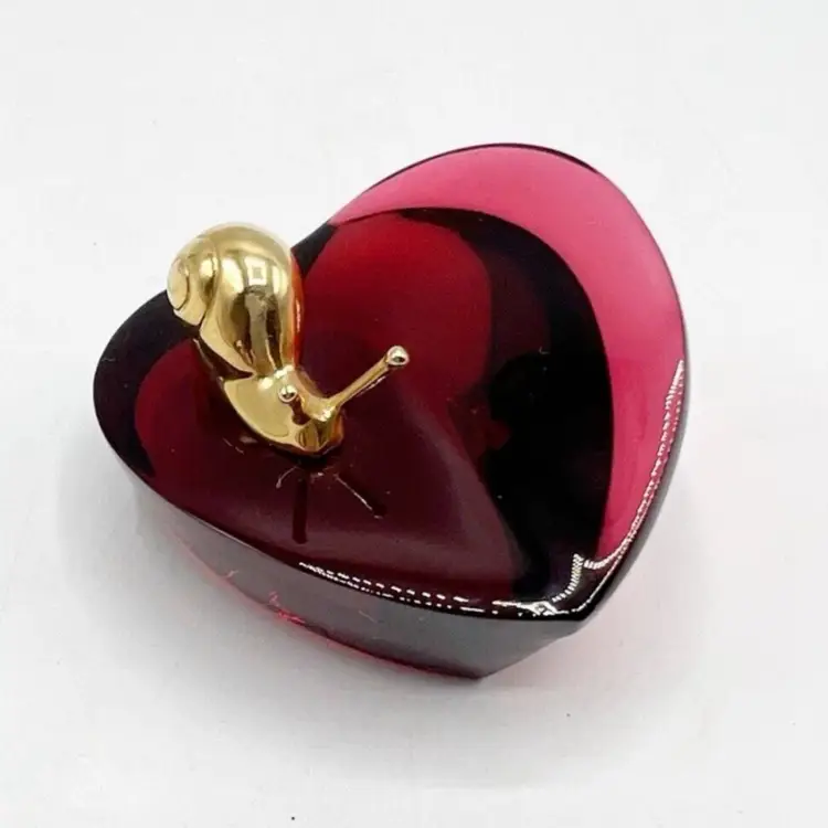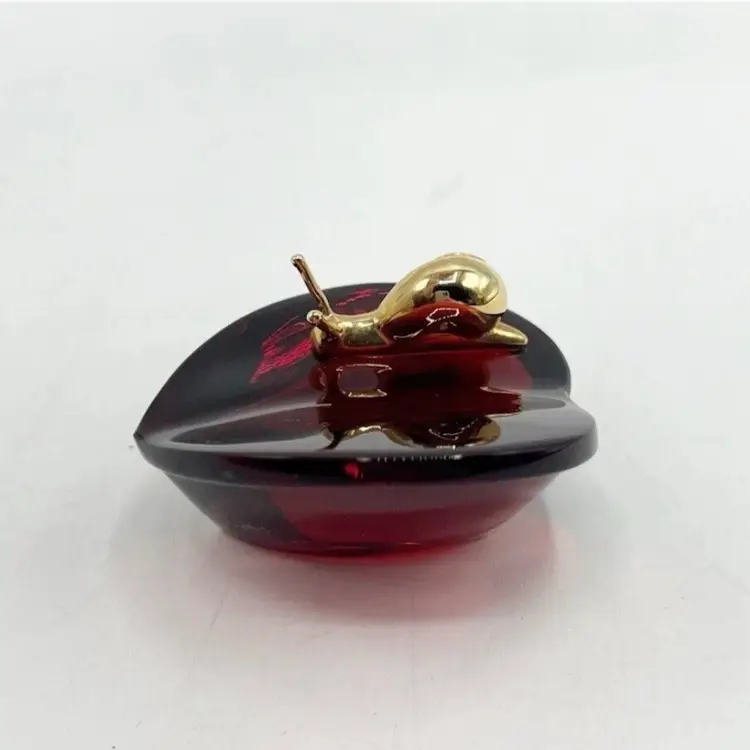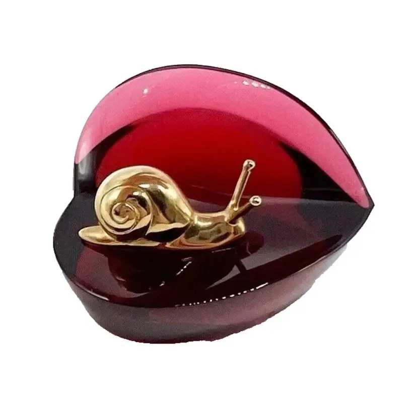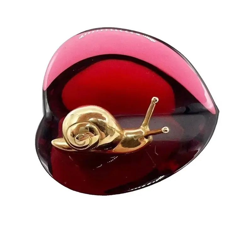 Baccarat Crystal Heart Paperweight Brass Snail Small Ruby Red Glass Art 2"