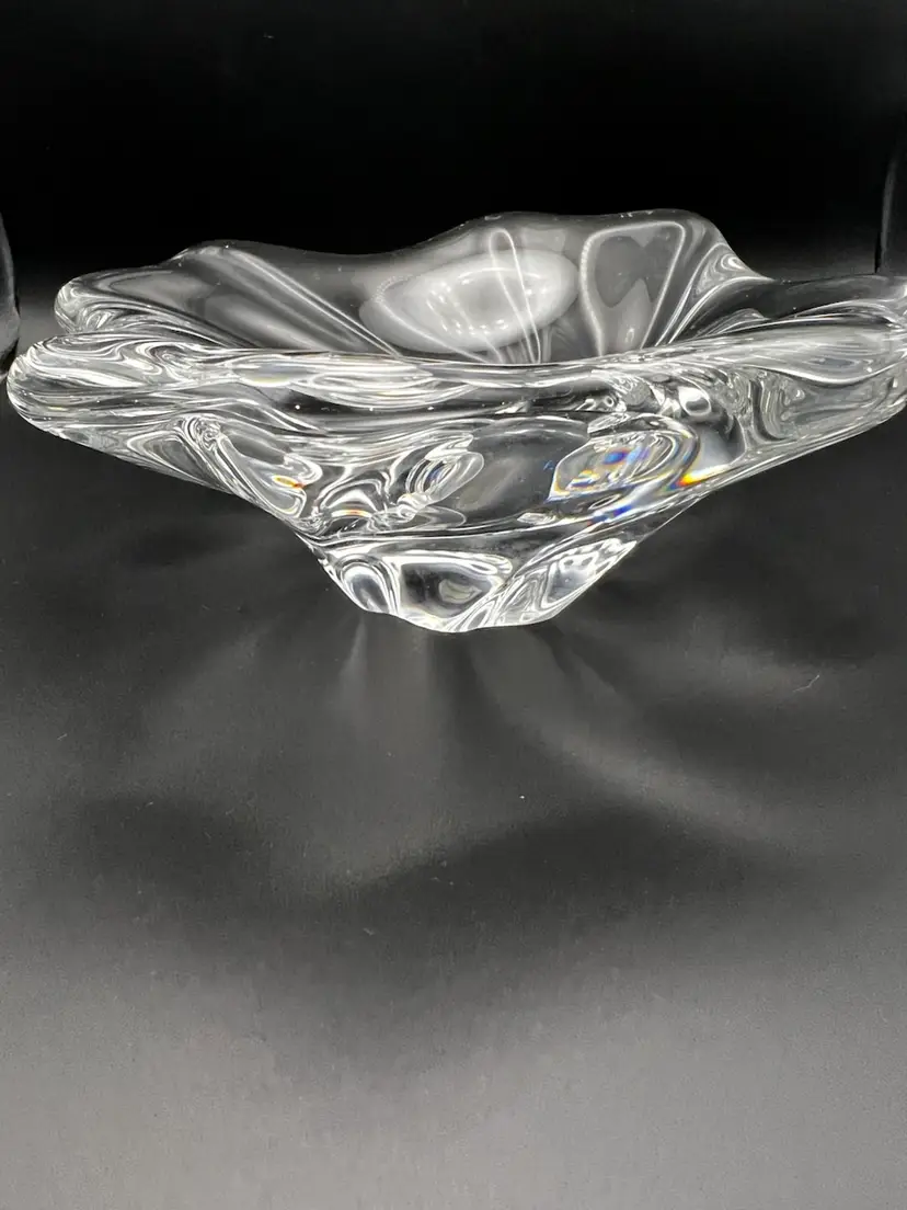 his exquisite Baccarat France crystal ashtray boasts a unique free-form design with the Cadix pattern. Crafted in 1950 using hand-blown glass production techniques, this art glass ashtray is a true masterpiece. The clear crystal material adds an element of elegance to any room decor. Made in France, this ashtray is perfect for collectors or anyone who appreciates high-quality decorative pottery and glassware. Measuring 7 inches in size, this Baccarat ashtray is ideal for holding small candies or other decorative items.