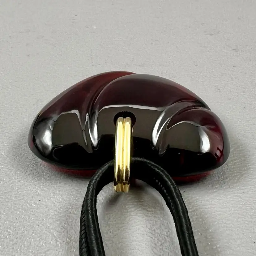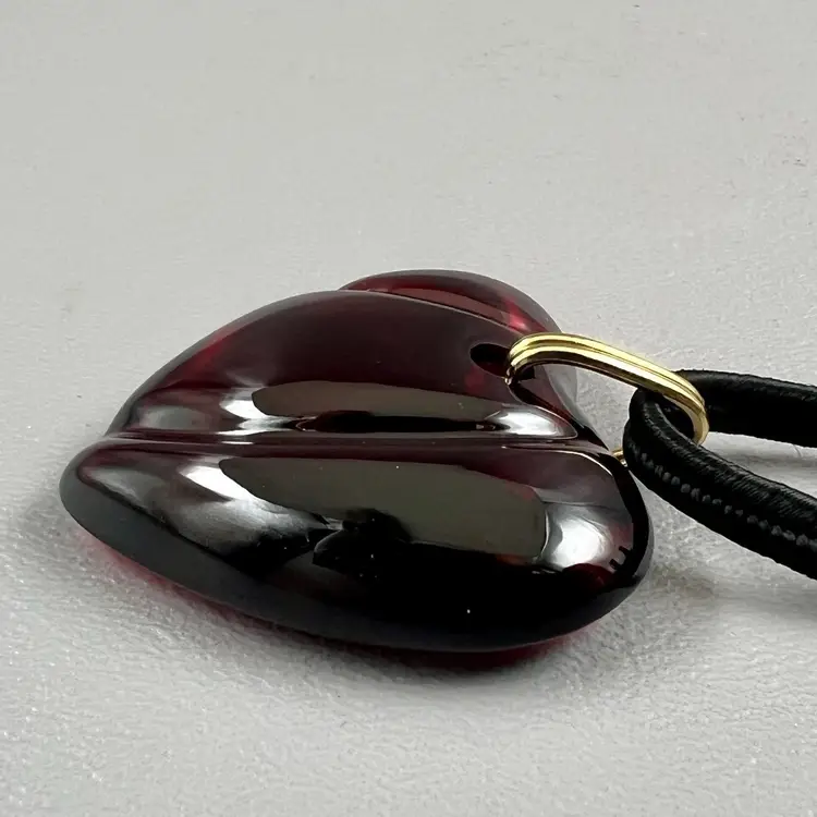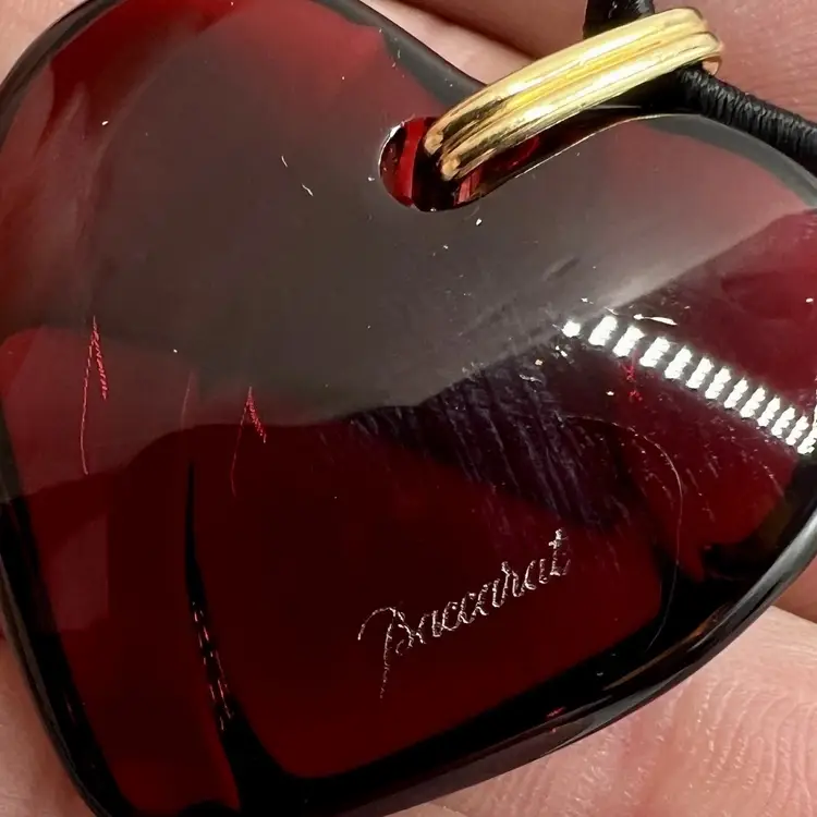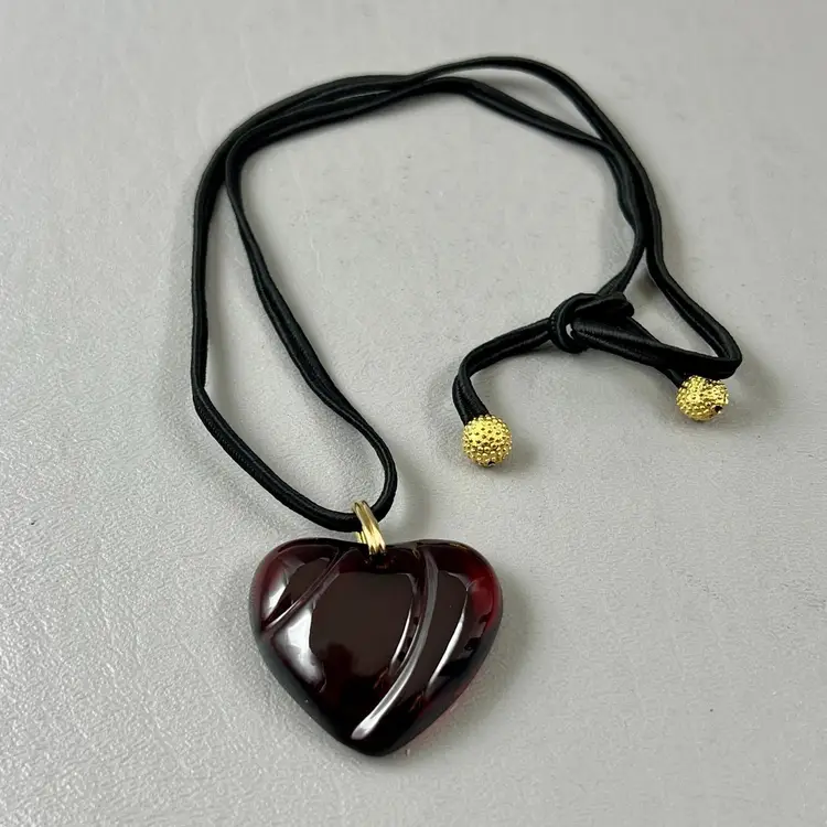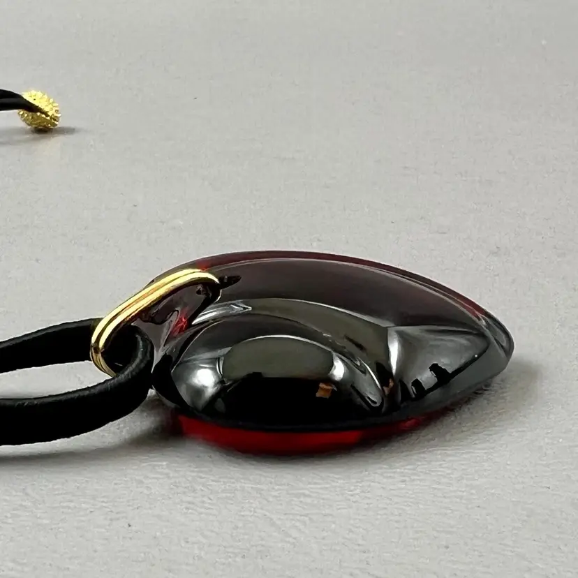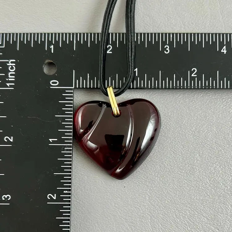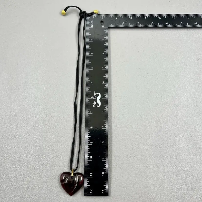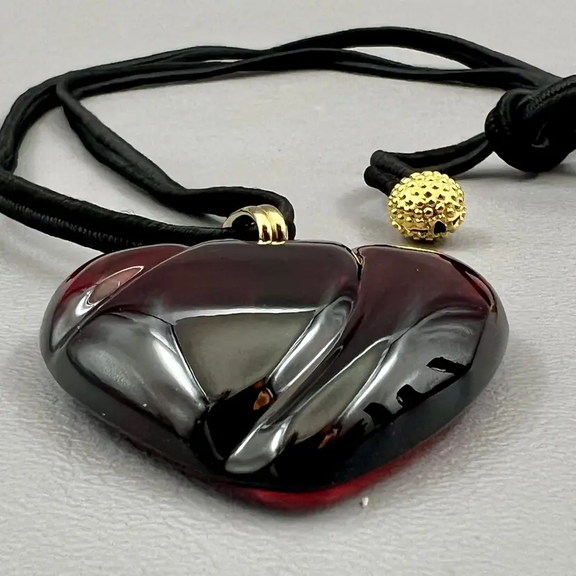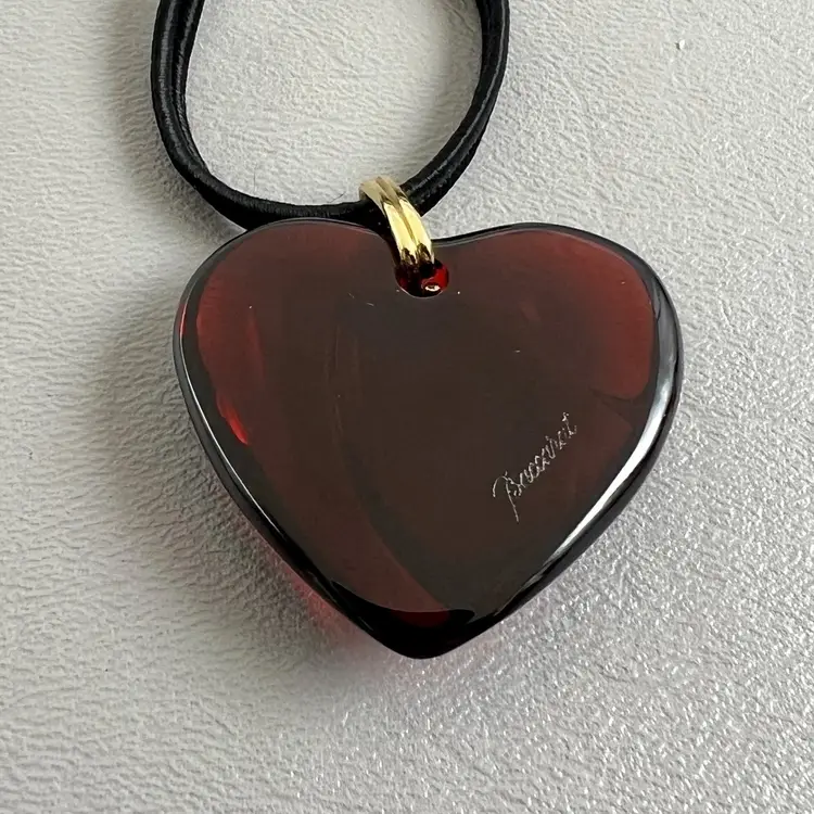 Baccarat Crystal Glass Red Heart Pendant With Black Cord Necklace Pendant is 1"