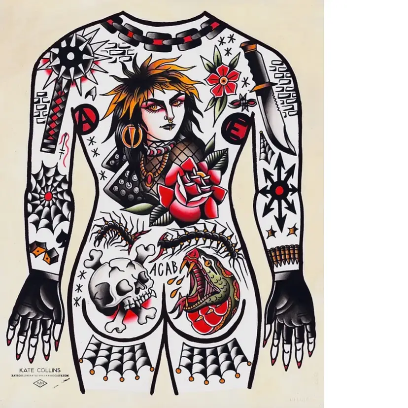 Print on Archival 230 Watercolor paper. Sized 24"x30", by Kate Collins of True Hand Society. @katecollinsart for tattoos!