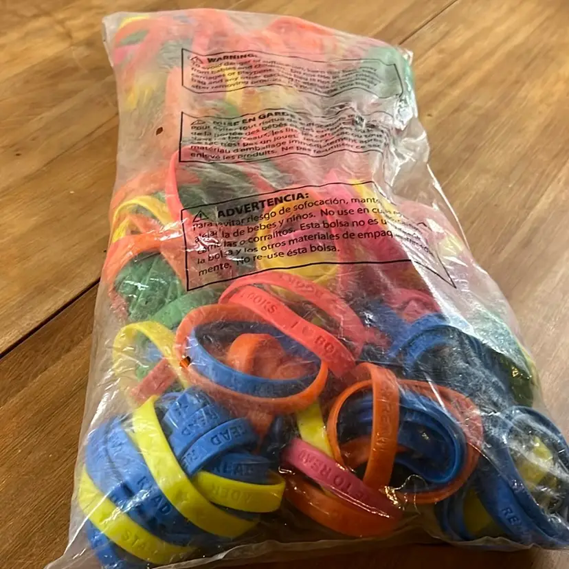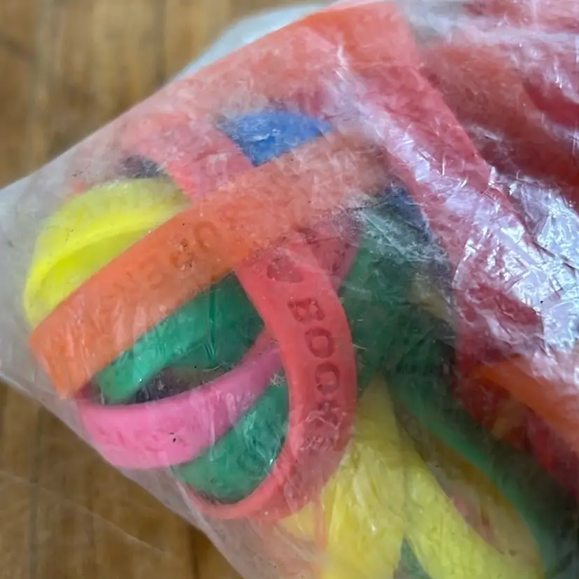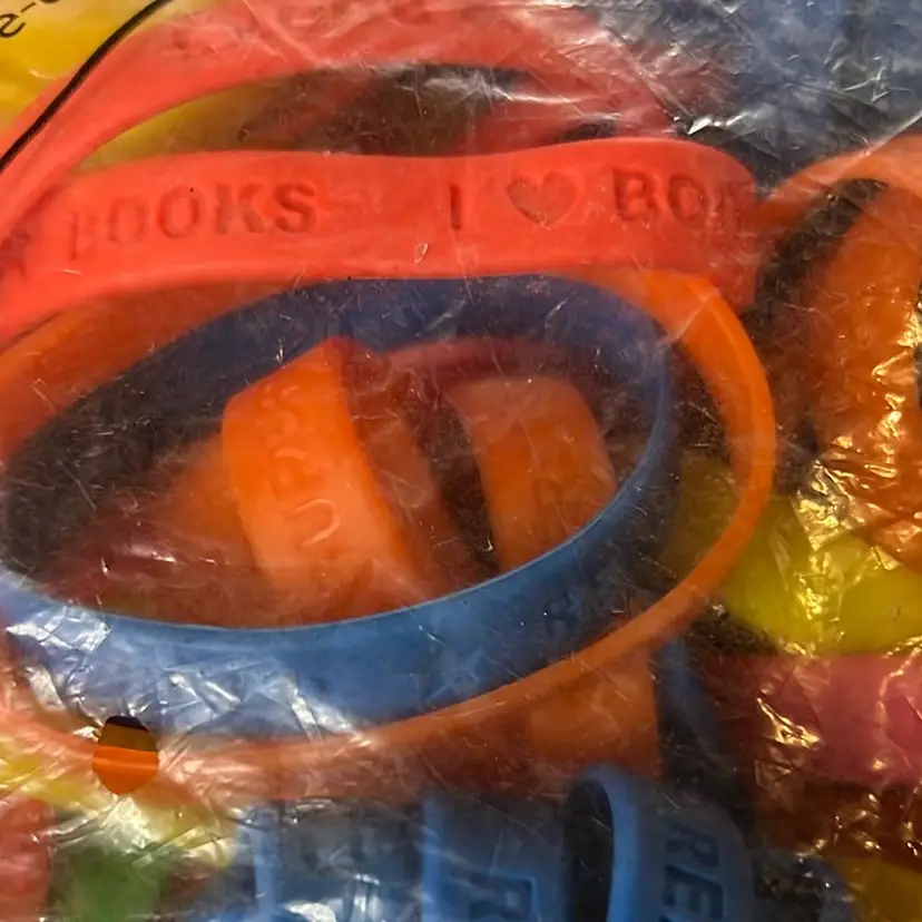 Assorted colors of Reading theme bracelets.