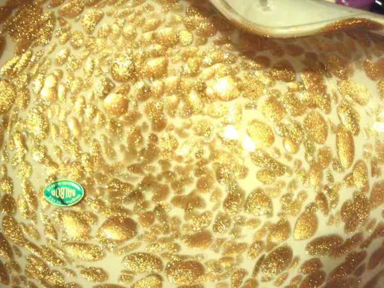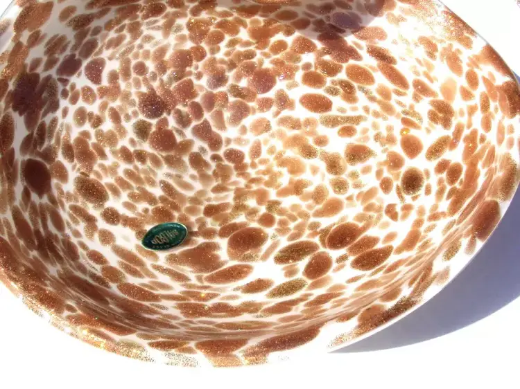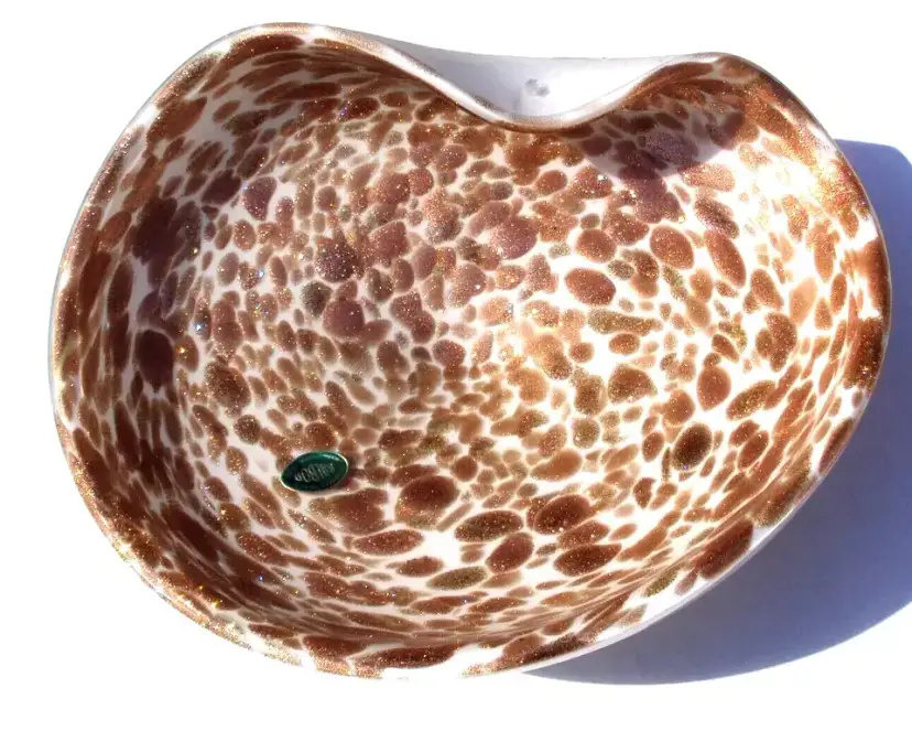 Beautiful bowl! Pictures do not do this piece justice. Very sparkly! No chips or cracks! Measures 3 1/4" tall X 7 7/8" X 9 3/4".