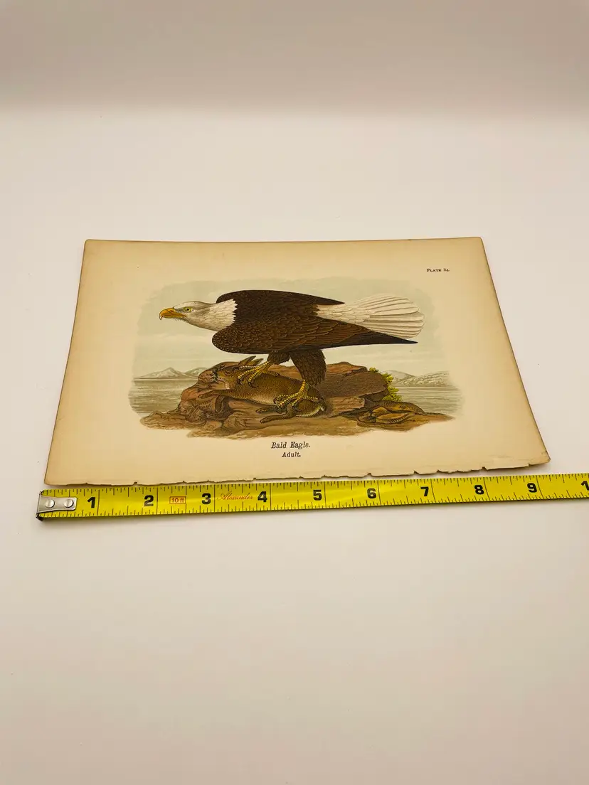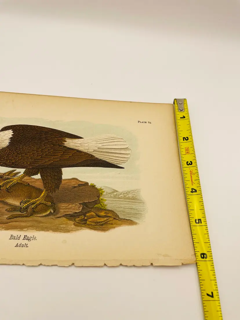 “Bald Eagle Adult”, c. 1890 Color Plate Engraving, Plate 84, From An Antique Book Please see pictures for measurements.