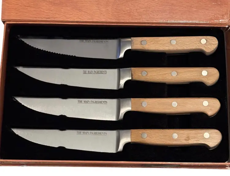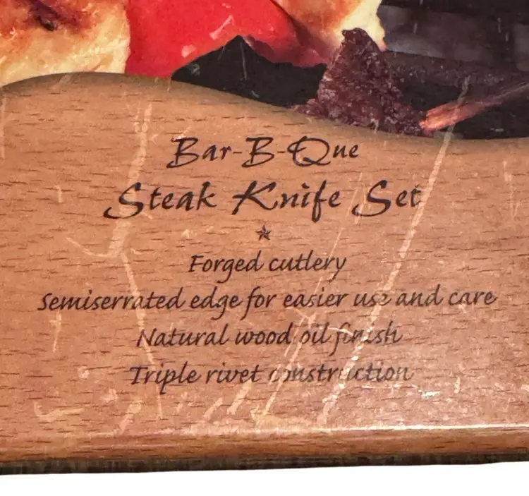 • Set Includes 4 Knives • Forged Cutlery • Semiserrated Edge • Natural Wood Oil Finish • Triple Rivet Construction