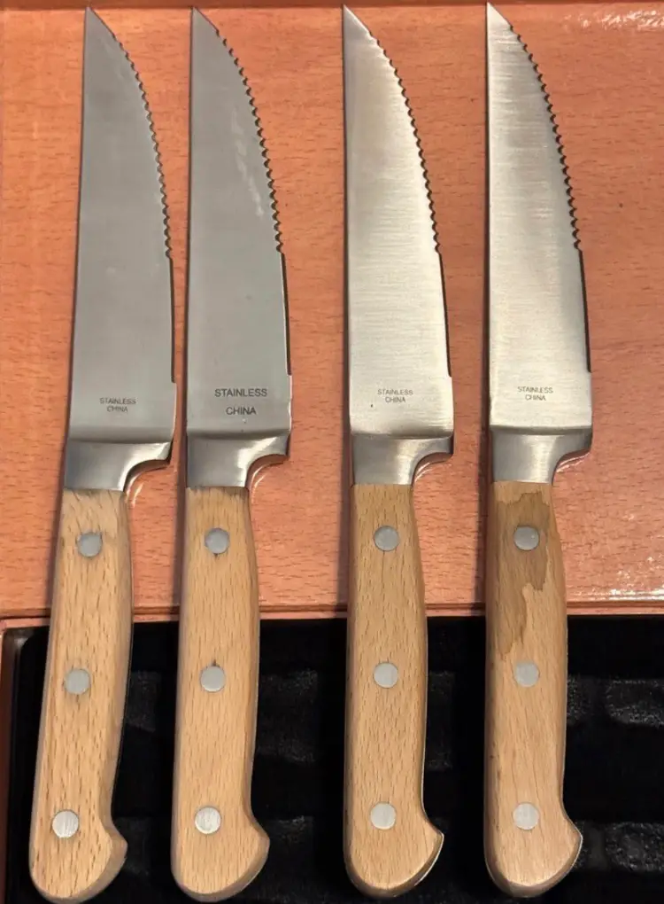 There are a couple of watermarks on the handles from soaking in water for too long. You can use wood oil to renew.