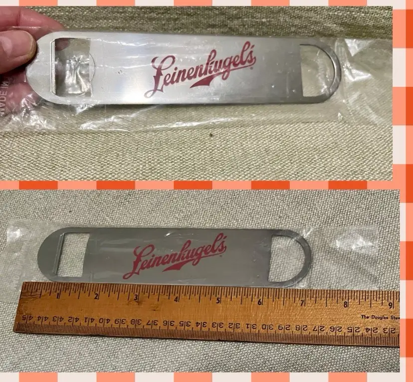 Here is a vintage beer bottle opener or church key or paddle opener, featuring the branding of Jacob Leinenkugel Brewing Co. out of Wisconsin, USA. It was made in Taiwan still within its original packaging. This would be a great addition to your pub or bar household or camping supplies. Attach it to a 6-pack of beer for a gift.