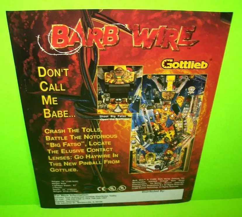 Model: Barb Wire Original: Paper Promotional Advertising Pinball: Flyer Modified Item: No Country/Region of Manufacture: United States Year: 1996 Brand: Unbranded Theme: Movie