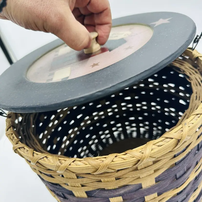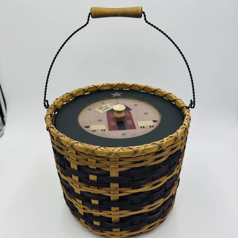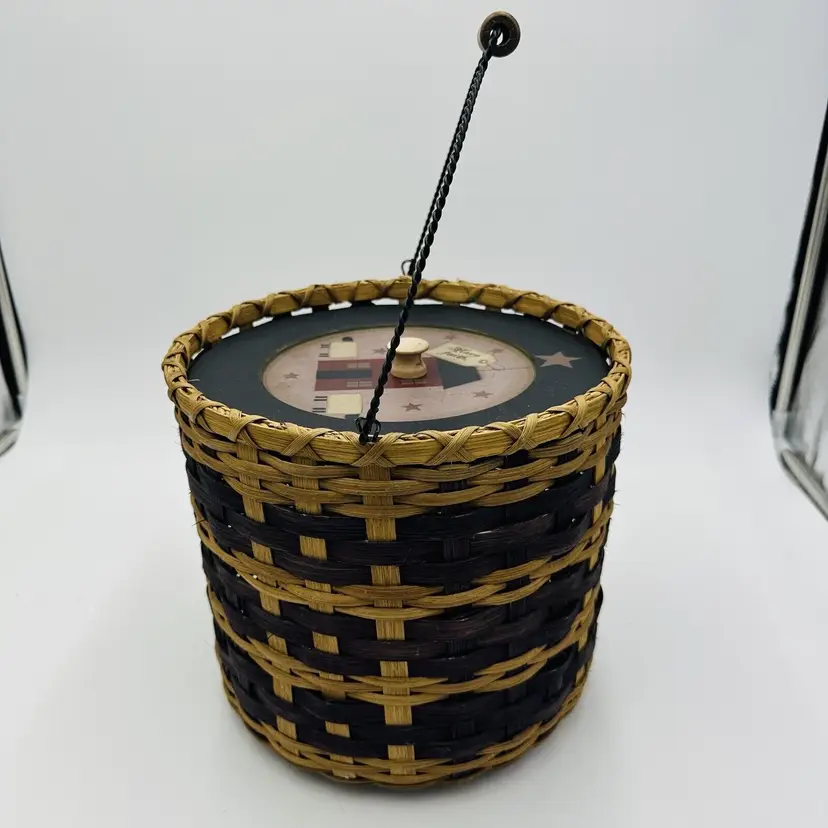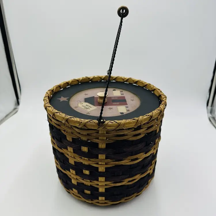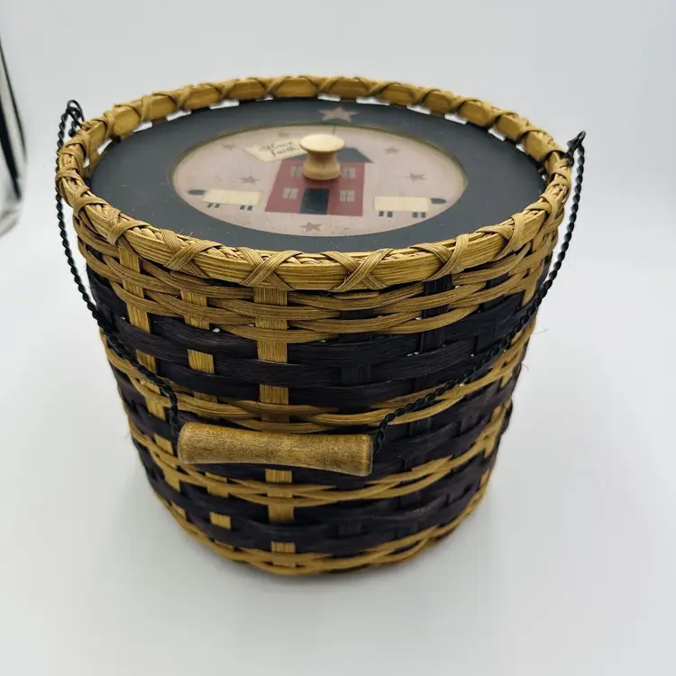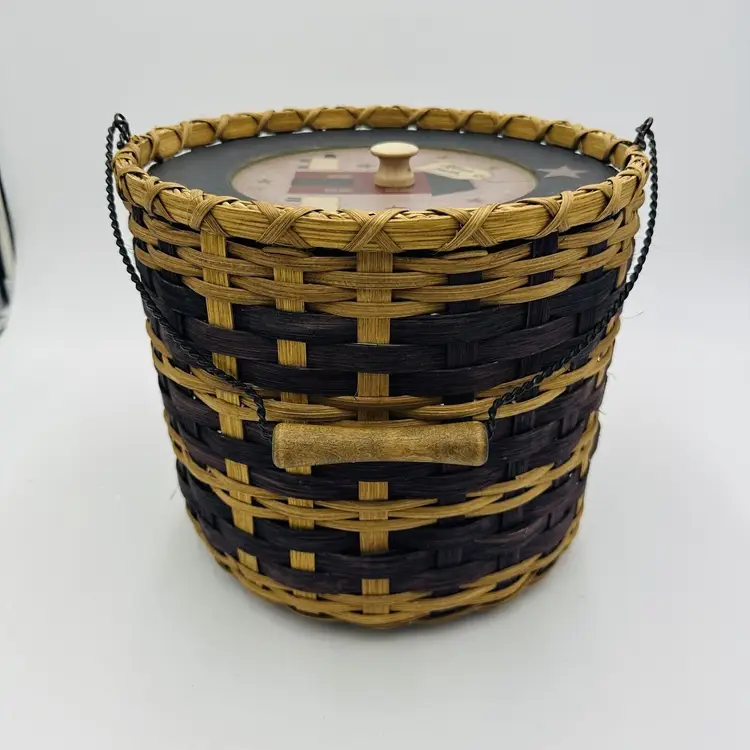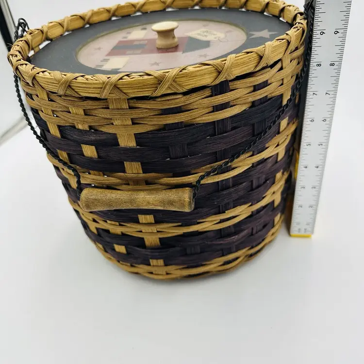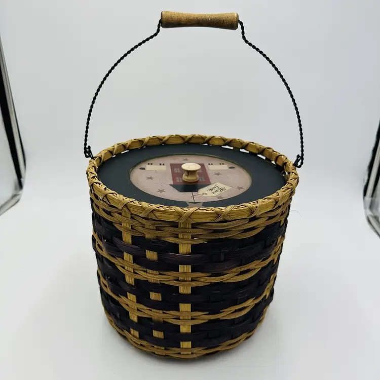 Number in Pack: 2 Department: Adults Pattern: Woven Item Length: 10 in Item Height: 10 in Occasion: All Occasions Size: Medium Country/Region of Manufacture: United States Material: Wood Year Manufactured: 2012 Shape: Round Finish: Antique Brand: Barbara Lloyd Color: Multicolor Type: Storage Basket Original/Reproduction: Original