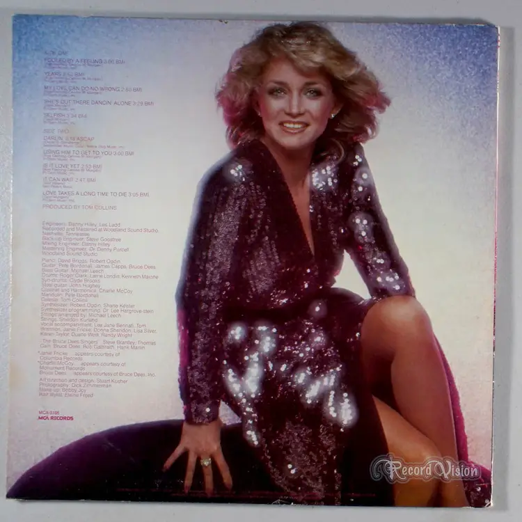 Just for the Record, by Barbara Mandrell, features two Top 5 Country hit singles. The first, Fooled by a Feeling also peaked on the Billboard Hot 100 and on the Top 30 on the Adult Contemporary charts. The second single, Years, went to No. 1, as well as the Top 40 on the Adult Contemporary charts. This exemplified Mandrell's new crossover style. The album was produced by Tom Collins, who helped Mandrell bring out this Pop sound onto her albums. The album also included a cover of a pop tune called Darlin', also recorded by Tom Jones. Just for the Record proved to be very successful, peaking at No. 9 on the Top Country Albums chart in 1979, as well as reaching No. 166 on the Billboard 200, her third album to peak on the Billboard 200.