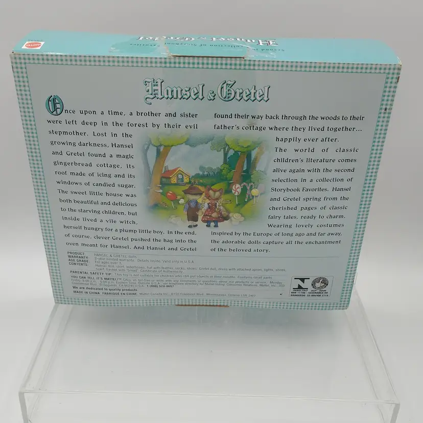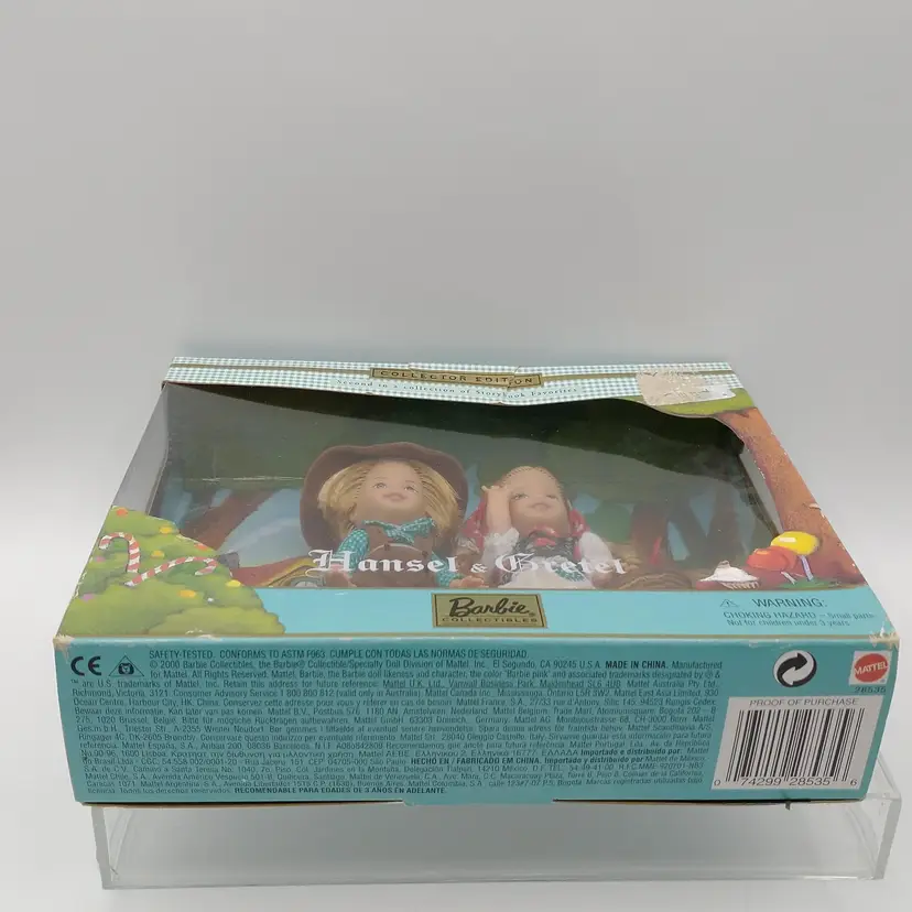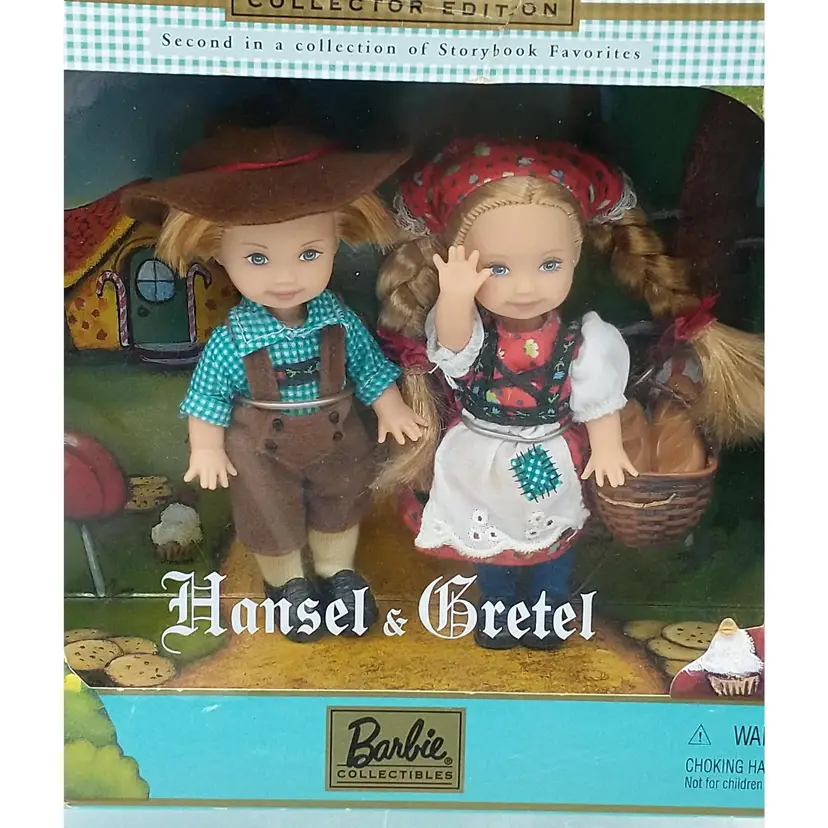 This is a Barbie Collectibles Hansel & Gretel doll set from 2000. It is the second in a collection of storybook favorites. It features Kelly and Tommy and is collector's edition that is in it's original box. The box has been opened but it doesn't look like the dolls were ever removed. The dolls are 4" tall and the code on the box is #28535. I have taken pictures from all angles of the box, if you need additional photos please let me know.