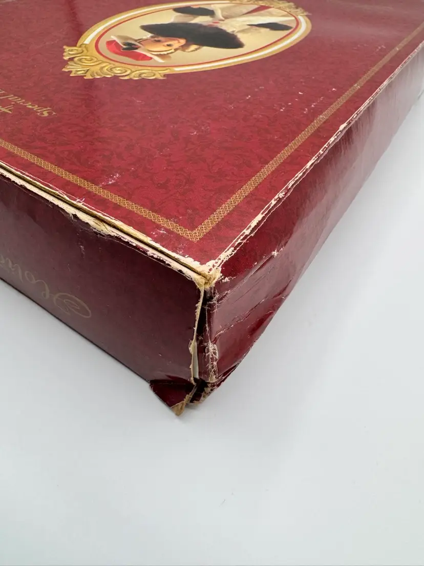 Condition: Pre-owned doll appears unused and remains factory secured inside the original packaging with clean clothing and accessories. The clear plastic cover to protects doll is in great shape. Outer box shows heavy storage wear including crushed and split top corner, multiple creases, edge and corner rubbing, and scattered surface scuffs and small tears. Please see all pictures as they are part of the description.